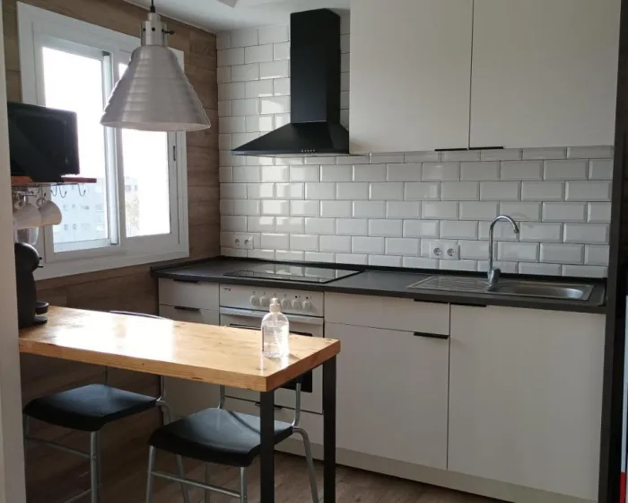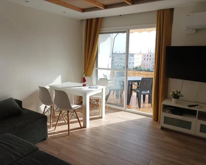 Apartman ima 2 spavaće sobe, 1 kupatilo, posteljinu, peškire, TV sa ravnim ekranom i satelitskim kanalima, trpezarijski deo, potpuno opremljenu kuhinju i terasu sa pogledom na more. Objekat nudi pogled na grad.