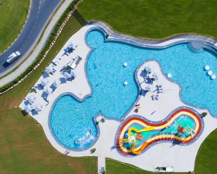 Otvoreni bazenski kompleks uključuje dečiji bazen i idealan je za vežbanje ili opuštanje. Uzbuđenje na toboganu, osvežavajuća pića u baru pored bazena i opuštajuće kupanje u đakuziju – bazenski prostor ima nešto za svako stanje uma i tela. Ležaljke i suncobrani su dostupni na terasi, gde gosti mogu da naprave kratku pauzu ili se opuste satima. Odmarališni kompleks nudi obiman program sportskih aktivnosti na otvorenom, uključujući vožnju bicikla/biciklizam, tenis, odbojku i ribolov. Na raspolaganju je širok spektar sportova, uključujući vodene sportove kao što su jedrenje na dasci, kanuizam, ronjenje ili, uz nadoknadu, jedrenje. Sportski i rekreacioni sadržaji u kompleksu uključuju teretanu i stoni tenis. Spa zona sa wellness centrom je dostupna u kompleksu. Opcije zabave i rekreativnih sadržaja uključuju program zabave i klub za decu.