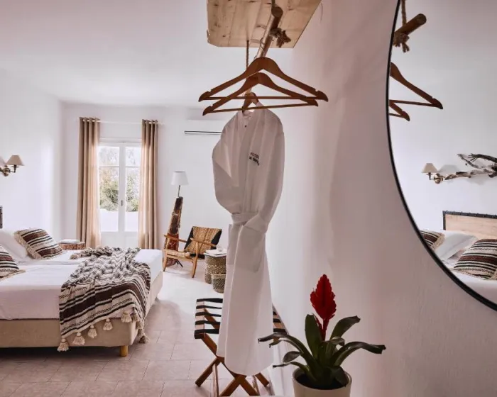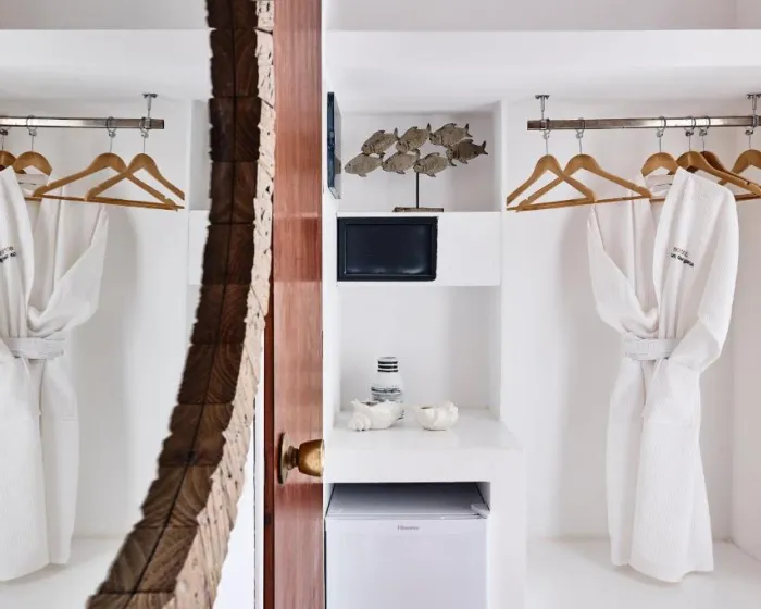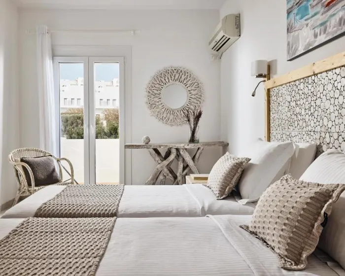 Sobe su klimatizovane i imaju individualno podesivu air conditioning. Sa balkona ili terase pruža se pogled na more. Smeštajne jedinice raspolažu bračnim ležajem, uz mogućnost dodavanja pomoćnog kreveta. Gostima su na raspolaganju sef i mini bar, kao i frižider, mini frižider i aparat za kafu ili čaj. Direktna telefonska linija, TV sa satelitskim ili kablovskim kanalima i besplatan Wi-Fi omogućavaju udoban boravak. Kupatila su opremljena tušem i kadom, fenom za kosu i osnovnim kozmetičkim proizvodima. Dostupne su i porodične sobe, pogodne za boravak sa decom.