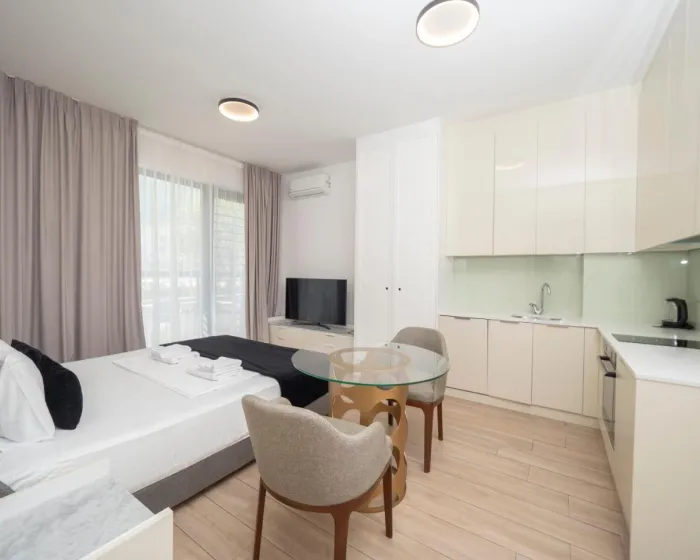 Sve jedinice imaju klima uređaj i flat-screen TV. Svaka jedinica ima privatno kupatilo, sef i besplatan WiFi, dok neke sobe imaju balkon, a neke pogled na more. U apart hotelu, svaka jedinica je opremljena posteljinom i peškirima.