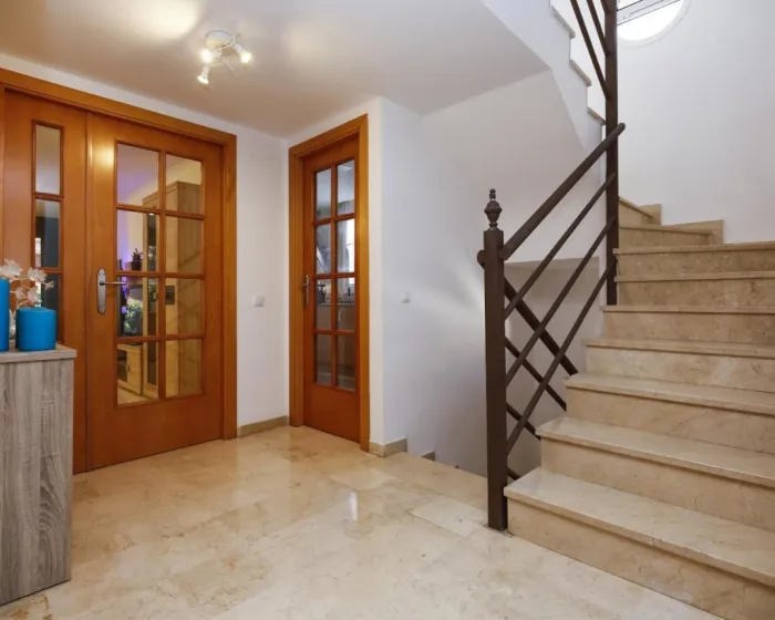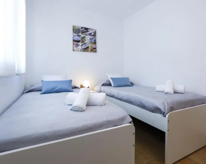 Prostrana kuća za odmor ima 4 spavaće sobe, 3 kupatila, posteljinu, peškire, TV, potpuno opremljenu kuhinju i terasu sa pogledom na vrt.