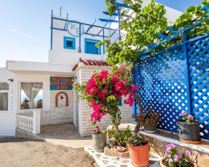 Nalazi se u Amoopiju, Hotel Castelia Bay nudi smeštaj na plaži, na 80 metara od plaže Maounas, i ima različite sadržaje, poput zajedničke dnevne sobe, terase i bara. Sa baštom, dvosoban hotel ima klimatizovane sobe sa besplatnim bežičnim internetom, svaka sa privatnim kupatilom. Gosti mogu popiti piće u snek baru.