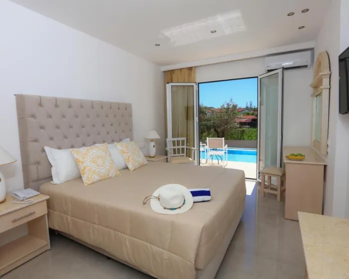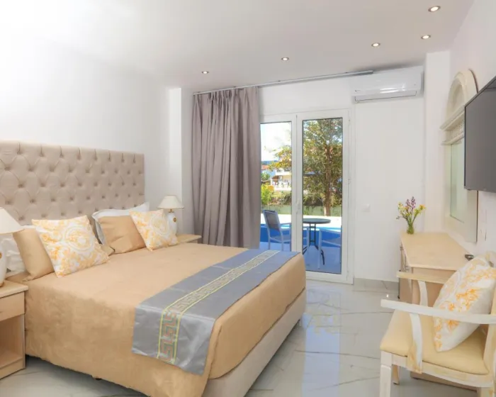 Sobe su klimatizovane i imaju centralno grejanje. Pojedine sobe raspolažu balkonom ili privatnom terasom sa pogledom na more. U sobama se nalaze bračni, queen size ili king size ležajevi, kao i sofa ležaj, uz mogućnost dodavanja pomoćnog kreveta. Gostima su na raspolaganju sef, mini bar i radni sto. Dodatna oprema uključuje mali frižider, aparat za kafu i čaj, direktnu telefonsku liniju, TV i besplatan Wi-Fi. U sobama se nalaze i papuče. Kupatila su opremljena tušem, kadom ili hidromasažnom kadom, a gostima su na raspolaganju fen za kosu, bade mantili i telefon.