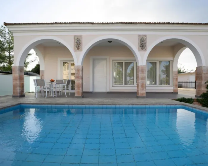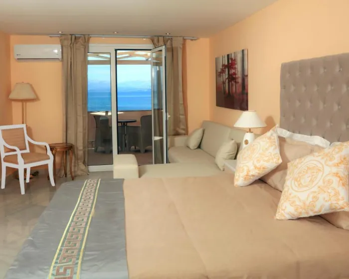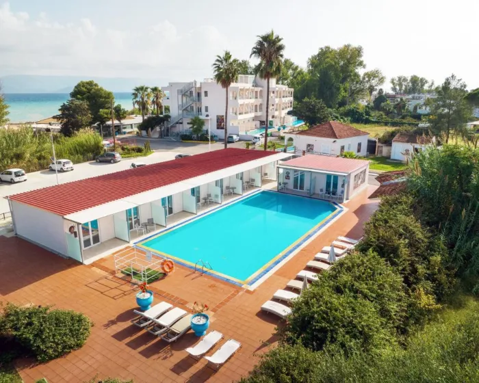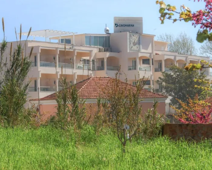 Cavomarina Beach Hotel je namenjen isključivo odraslima i nalazi se direktno na plaži, dok su najbliže prodavnice, barovi i živahni noćni klubovi udaljeni oko 150 metara. Međunarodni aerodrom na Krfu nalazi se na približno 40 km od hotela.