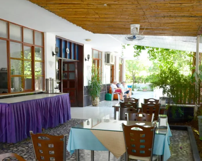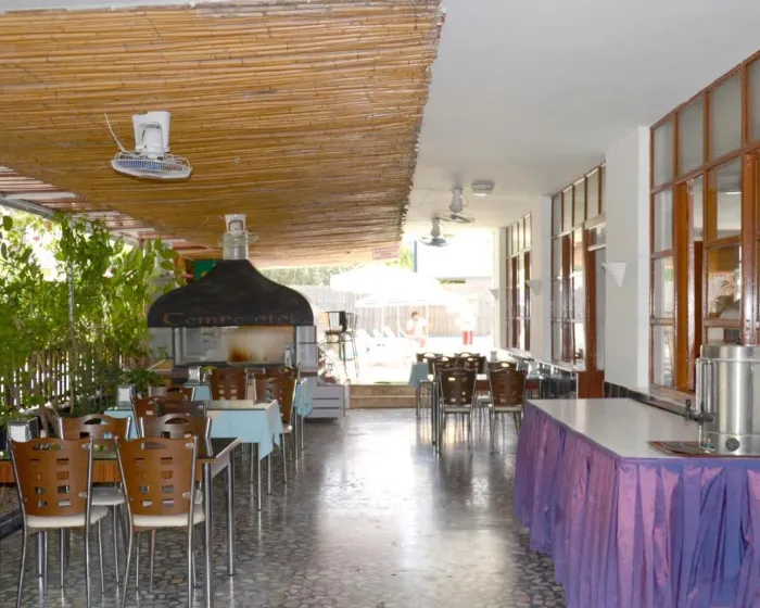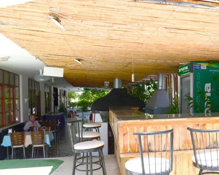 Udobna terasa omogućava uživanje u lepom vremenu. Koordinatori aktivnosti organizuju zabavni program za odrasle i decu.