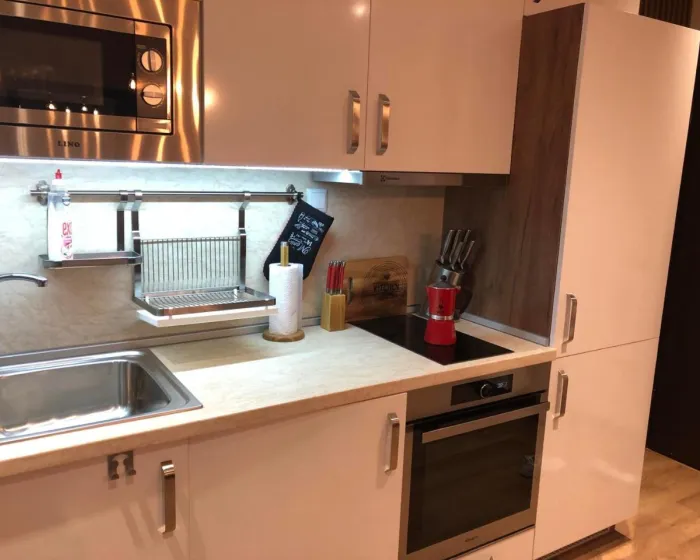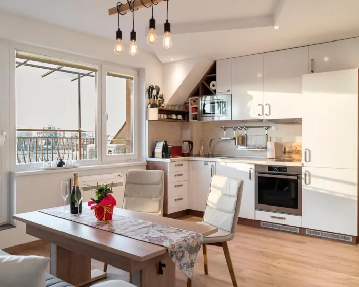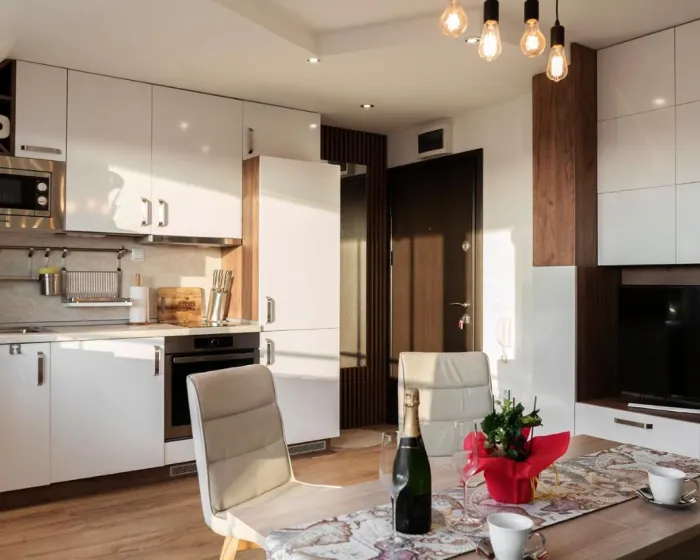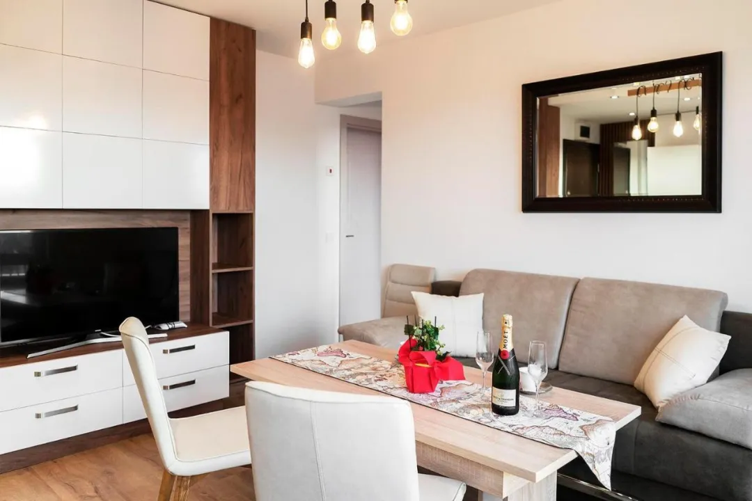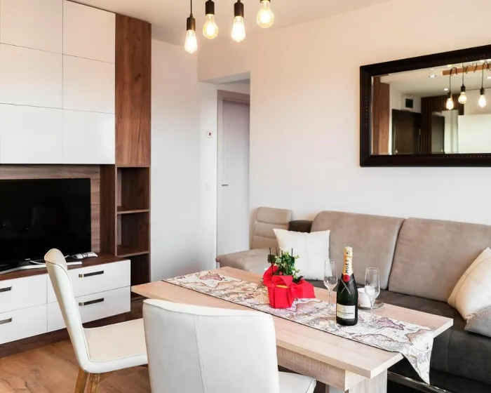 Prostrani apartman ima 1 spavaću sobu, 2 kupatila, posteljinu, peškire, flat-screen TV sa satelitskim kanalima, trpezariju, potpuno opremljenu kuhinju i terasu sa pogledom na planinu. Jedinična smeštajna jedinica uključuje kadu i svlačionicu. Ovaj apartman je za nepušače i zvučno izolovan.