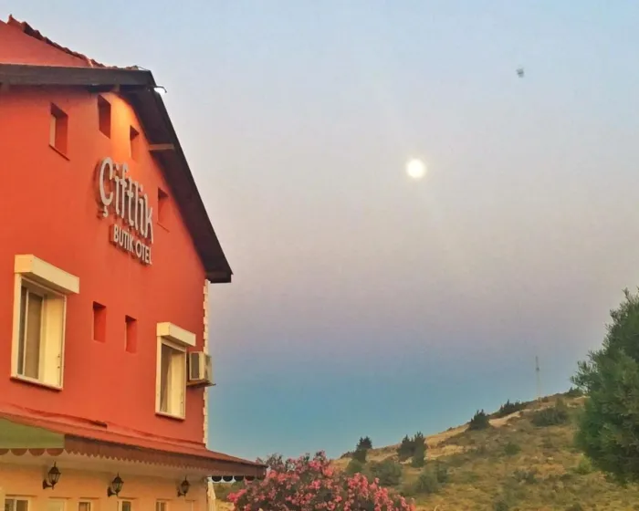Ciftlik Hotel nudi vrt, zajednički salon, terasu i restoran u Češmeu. Objekat se nalazi na 1,2 km od plaže Čiftlikkoy. Hotel ima spoljni bazen, recepciju koja radi 24 sata i besplatan WiFi.