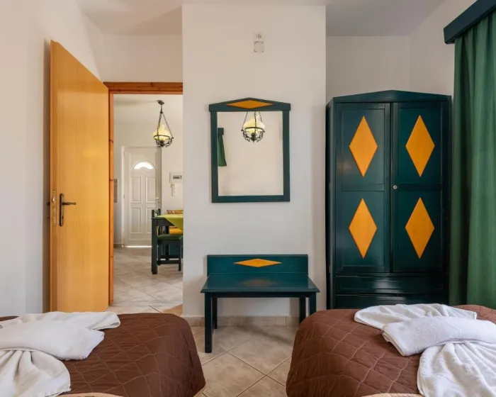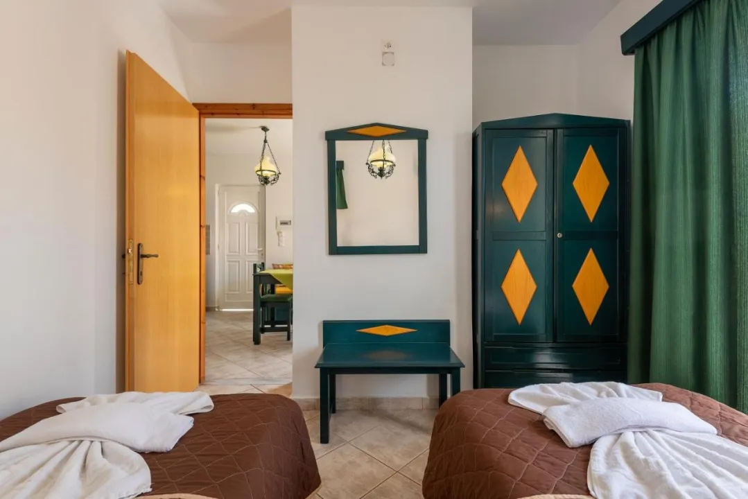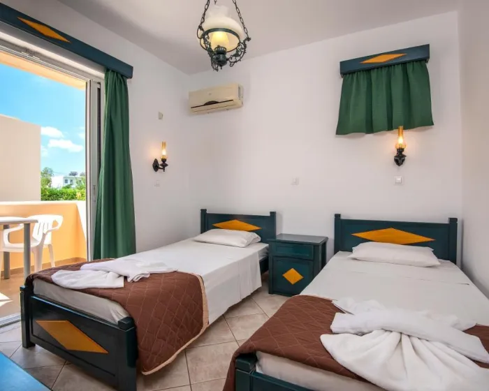 Sobe su opremljene klima uređajem i centralnim grejanjem. Gosti mogu uživati na balkonu ili terasi. Sobe uključuju bračni krevet. Dragocenosti se mogu sigurno čuvati u sefu. Kuhinjski deo dolazi sa frižiderom. WiFi (bez dodatne naplate) obezbeđuje dodatnu udobnost. Kupatila su opremljena tušem i uključuju fen za kosu. Kao posebna pogodnost, kupatila su opremljena kozmetičkim proizvodima i izborom peškira. Hotel ima porodične sobe i sobe za nepušače.