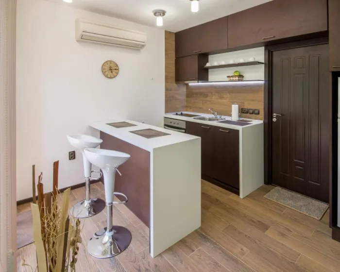 Smeštaj je klimatizovan i ima flat-screen TV sa kablovskim kanalima. Neke jedinice imaju terasu i/ili balkon sa pogledom na grad. Sve jedinice sadrže kuhinju opremljenu mašinom za pranje sudova, tosterom i aparatom za kafu. Peškiri i posteljina su dostupni. Tu je i veš mašina.