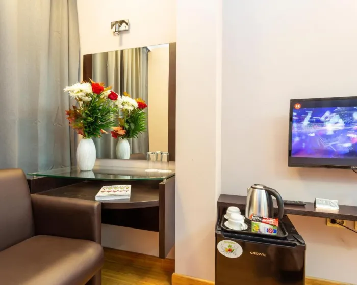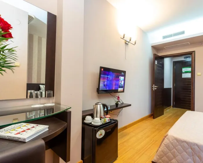 Centralno grejanje obezbeđuje da sobe održe pravilnu temperaturu. U sobama se nalazi bračni krevet ili sofa. Dodatni kreveti mogu biti zatraženi. Sef i minibar su takođe dostupni. Gosti će takođe pronaći postaju za čaj/kafu među standardnim sadržajima. Telefon, satelitska televizija i WiFi pružaju sve što je potrebno za udoban odmor. Telefon je obezbeđen i u kupatilima. Hotel ima porodične sobe i sobe za nepušače.