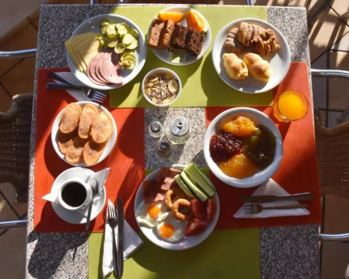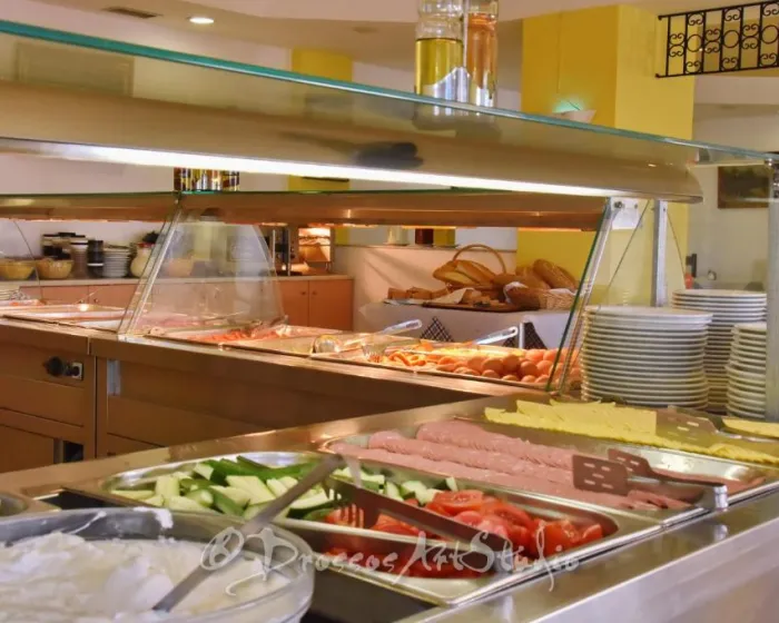 U okviru hotela nalaze se restoran, trpezarija, kafić i bar. Gostima je na raspolaganju all-inclusive usluga, koja uključuje širok izbor alkoholnih i bezalkoholnih pića. Raznovrstan švedski sto dostupan je za doručak, ručak i večeru. Po zahtevu mogu se pripremiti dijetalni obroci, vegetarijanska jela i specijalni obroci za decu. Hotel takođe nudi posebne opcije keteringa.