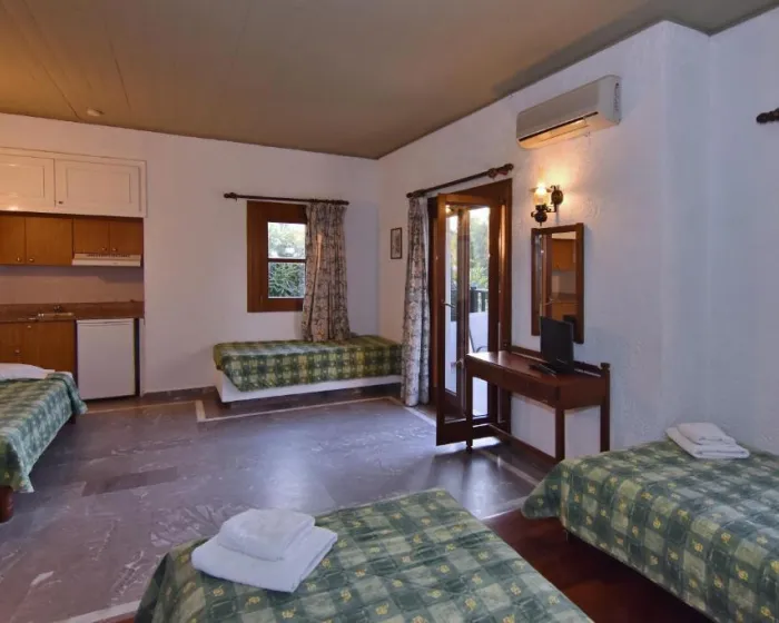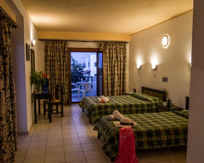 Klimatizacija i centralno grejanje obezbeđuju prijatan boravak tokom cele godine. Gosti mogu uživati u pogledu na vrt sa balkona ili terase. Sobe su opremljene bračnim krevetom, a dostupne su i odvojene spavaće sobe. Na zahtev se mogu obezbediti krevetići za decu i dodatni ležajevi. Sef je dostupan za sigurno čuvanje ličnih stvari. Standardna oprema uključuje i frižider. Gostima su na raspolaganju direktna telefonska linija, TV, radio i besplatan WiFi. Kupatila su opremljena tušem i kadom, kao i fenom za kosu. Hotel nudi porodične i sobe za nepušače.