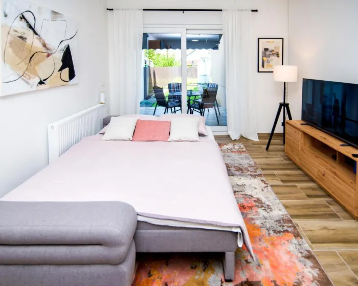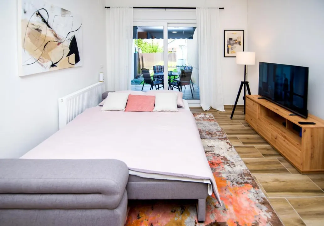 Apartman ima 1 spavaću sobu, 1 kupatilo, posteljinu, peškire, flat-screen TV sa satelitskim kanalima, trpezariju, potpuno opremljenu kuhinju i terasu sa pogledom na vrt. Privatni ulaz vodi goste u apartman, gde ih očekuje voće. Nekretnina ima prostor za ručavanje na otvorenom.