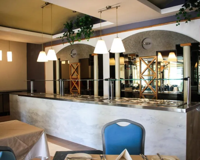 U hotelu su gostima na raspolaganju kafe i bar, kao i restoran za nepušače sa klimatizacijom i visokim stolicama za decu. Moguće je rezervisati noćenje sa doručkom, polupansion, pun pansion ili all inclusive uslugu. Svakodnevno se služi bogat doručak i večera u vidu švedskog stola, dok se ručak može naručiti po meniju. Dostupni su i vegetarijanski obroci, kao i lagani obroci i užine.