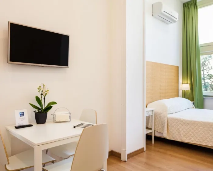 Klima uređaj i centralno grejanje osiguravaju udobne unutrašnje temperature. Sobe imaju bračni krevet, king size krevet ili sofa krevet. Dodatni kreveti mogu biti zatraženi. Na raspolaganju su sef i mini bar. Postoji potpuno opremljena kuhinjica sa frižiderom, mini frižiderom, šporetom, mikrotalasnom, aparatom za čaj/kafu i rernom. Pegla je obezbeđena radi gostićeve praktičnosti. Takođe su obezbeđeni telefon, TV i WiFi (bez dodatne naknade). U kupatilima se nalaze tuš kabina, kada i bide. Takođe je obezbeđen i fen za kosu. Za dodatnu udobnost u kupatilima, gostima se nude kozmetički proizvodi. Hotel ima porodične sobe i sobe za nepušače.