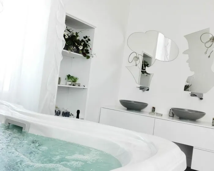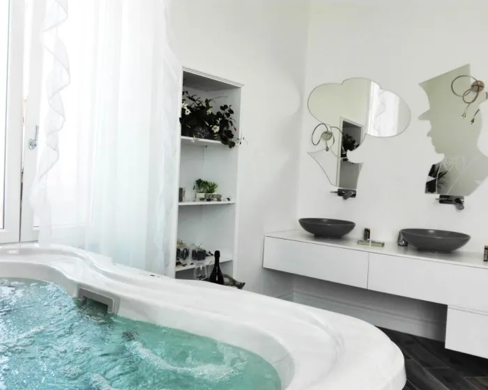 Suncobrani su takođe dostupni na terasi. Đakuzi na bazenu obećava potpunu relaksaciju.