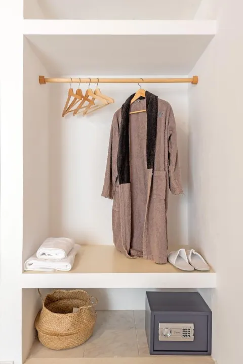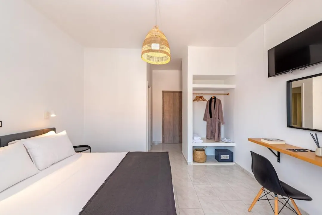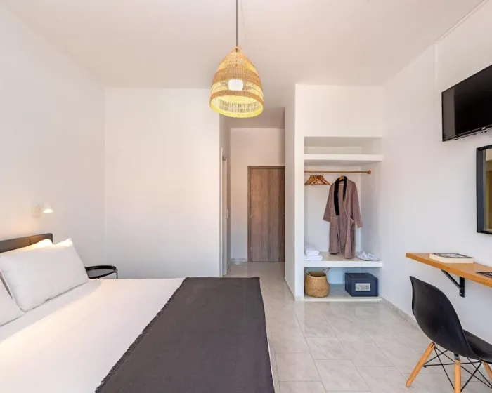 Sobe su opremljene klima uređajem i centralnim grejanjem. Većina jedinica ima pogled na more sa balkona ili terase. Sobe sadrže bračni krevet. Takodje, dostupna je sef i radni sto. Sve kuhinjske niše imaju frižider i aparat za kafu/čaj. Tu je i pegla i pantalone. Telefon, televizor sa satelitskim/kablovskim kanalima i WiFi (bez dodatne naplate) pružaju optimalnu udobnost. Papuče su uključene. Fen za kosu i bade mantili se nalaze u kupatilima, koja uključuju tuš i kadu. Kao posebna karakteristika, kupatila su opremljena kozmetičkim proizvodima i izborom peškira. Hotel ima porodične sobe i sobe za nepušače.