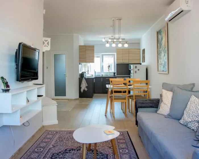 Apartman je opremljen sa 1 spavaćom sobom, 1 kupatilom, posteljinom, peškirima, flat-screen TV-om sa satelitskim kanalima, trpezarijom, potpuno opremljenom kuhinjom i balkonom sa pogledom na grad. Privatni ulaz vodi goste u apartman, gde mogu uživati u čokoladama ili keksima. Ovaj apartman je pogodan za osobe sa alergijama i nepušače.