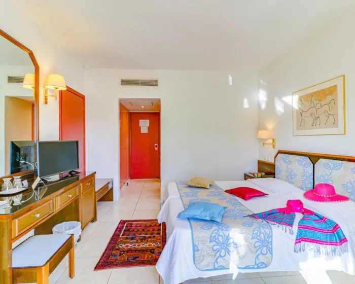 Sobe imaju dnevni boravak i kupatilo. Klima uređaj obezbeđuje udobnu temperaturu. Gostima se na dan dolaska priređuje dobrodošli poklon. Gosti mogu opušteno uživati u delimičnom pogledu na more sa balkona ili privatne terase nekih soba. Sobe imaju bračni krevet ili kauč na razvlačenje. Takođe su dostupni sef i radni sto. Dodatne pogodnosti uključuju frižider, mini frižider i aparate za kafu/čaj. Takođe se pruža direktno biranje telefona, ravan televizor sa satelitskim kanalima, adapter za utičnicu i WiFi (bez dodatne naknade). Čišćenje prilikom odlaska je među uslugama koje se nude. Gosti će takođe pronaći papuče u svojim sobama. Kupatila su opremljena tušem. Fen za kosu, ogledalo za šminkanje, bade mantili i telefon dostupni su za svakodnevnu upotrebu. Kozmetički proizvodi i pozadinska muzika pružaju dodatnu udobnost u kupatilima. Hotel ima sobe za nepušače.