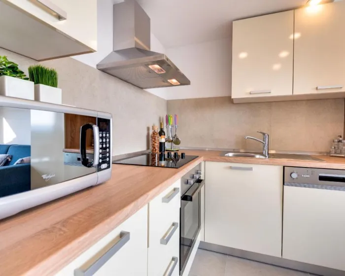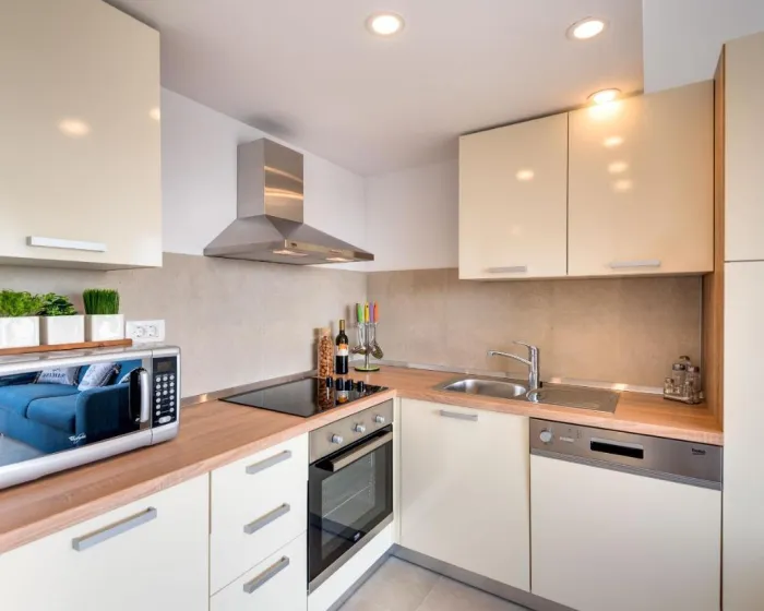 Apartman gostima nudi terasu, pogled na more, prostor za sedenje, satelitsku ravnu TV, potpuno opremljenu kuhinju sa sudomašinom i rernom, kao i privatno kupatilo sa tuš kabinom i fenom za kosu. Mikrotalasna pećnica, frižider i šporet takođe su obezbeđeni, kao i aparat za kafu i čajnik. U kompleksu apartmana, sve jedinice imaju posteljinu i peškire.