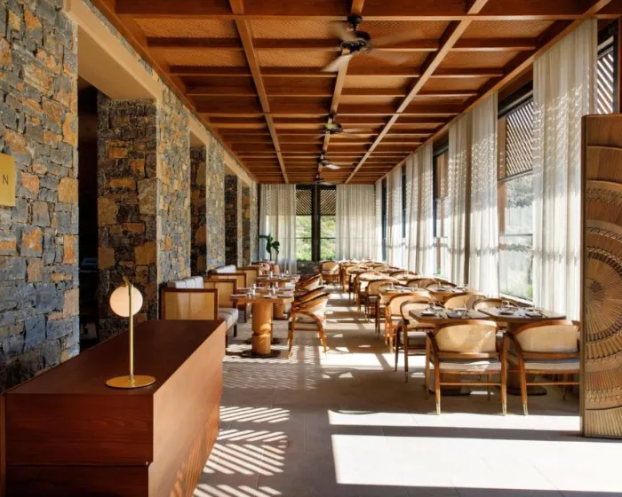 U okviru resorta nalaze se restoran i bar, a gosti mogu uživati u osvežavajućim pićima u baru na plaži. Usluge ishrane uključuju noćenje sa doručkom, polupansion, puni pansion i all-inclusive opciju. All-inclusive gosti imaju posebne pogodnosti, uključujući grickalice, širok izbor alkoholnih i bezalkoholnih pića, kao i besplatan minibar. Na zahtev se pripremaju obroci bez glutena i specijalni obroci za decu.