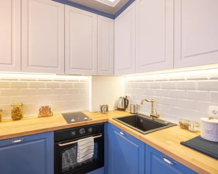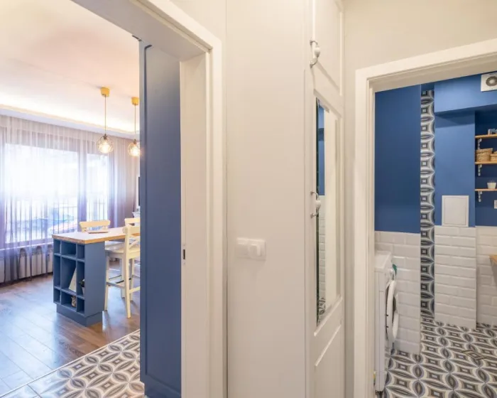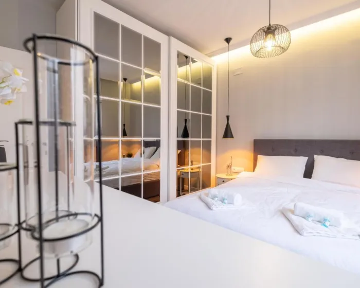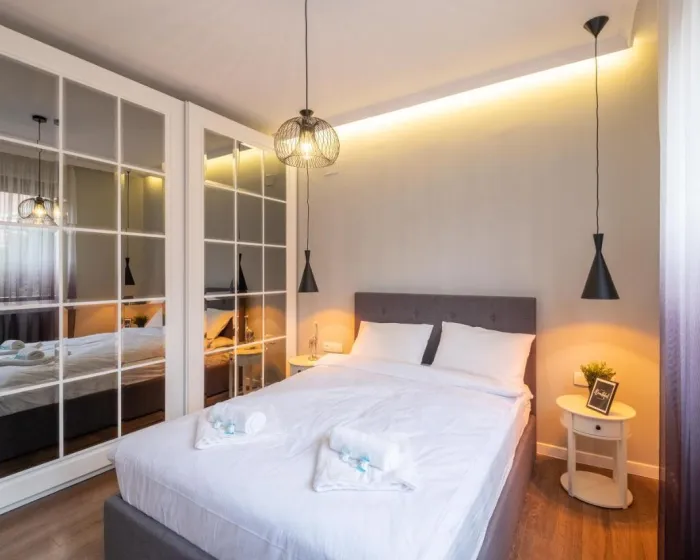 Prostrani stan opremljen je sa 2 odvojene spavaće sobe, 1 kupatilo, potpuno opremljenom kuhinjom sa trpezarijom i mašinom za pranje posuđa, i dnevnim boravkom sa TV-om sa ravnim ekranom. Peškiri i posteljina obezbeđeni su u apartmanu.