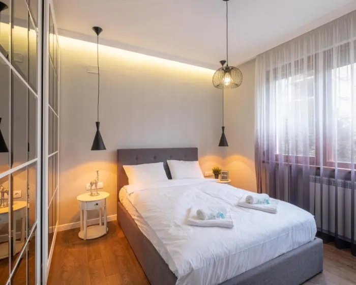 Popularne znamenitosti u blizini apartmana uključuju Arheološki muzej, Predsedništvo i Glavnu železničku stanicu Sofije. Najbliži aerodrom je Aerodrom Sofija, udaljen 6 km od dizajnerskog i udobnog stana sa 2 spavaće sobe i parkingom u centru grada. Ovaj objekat neće primiti zabave za devojačko ili momačko veče.