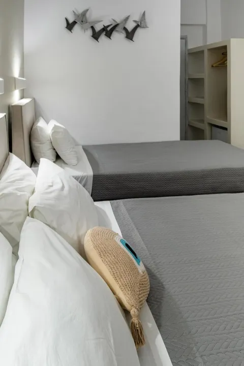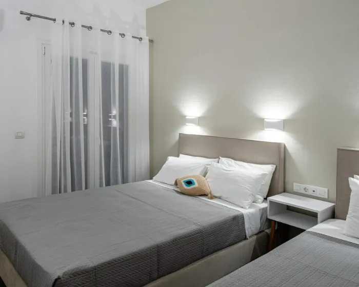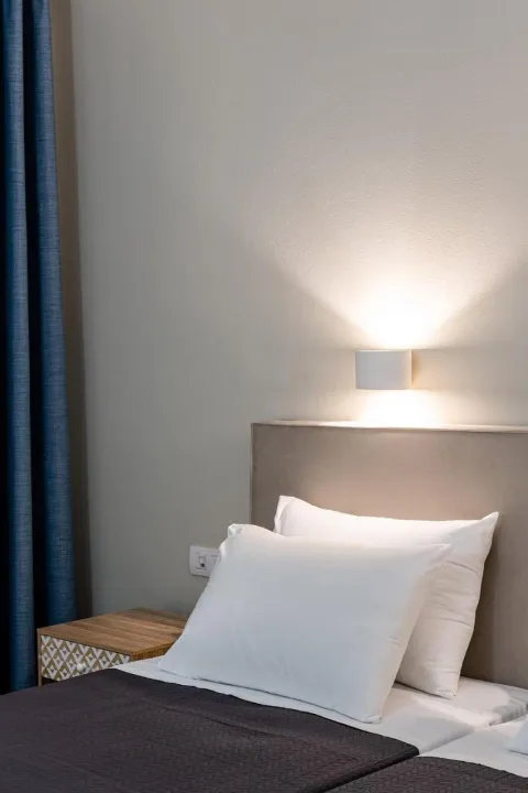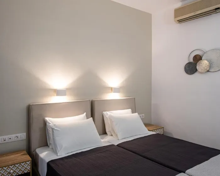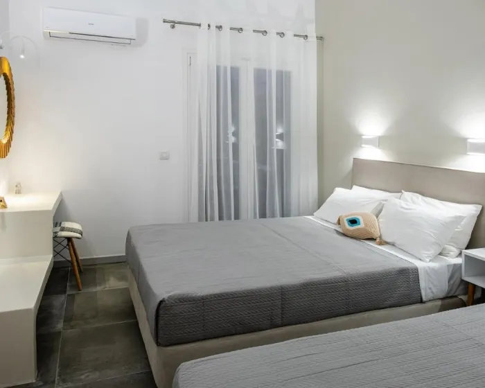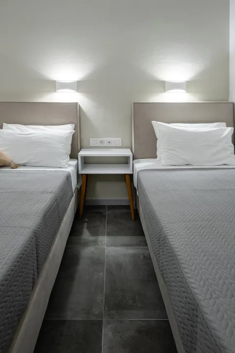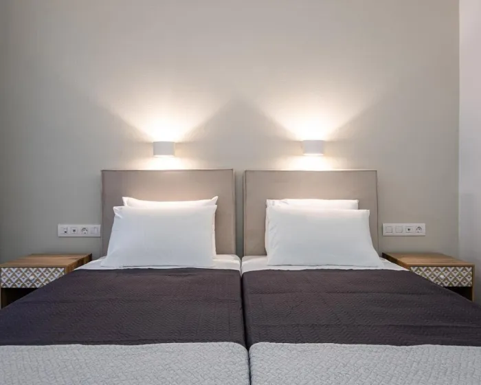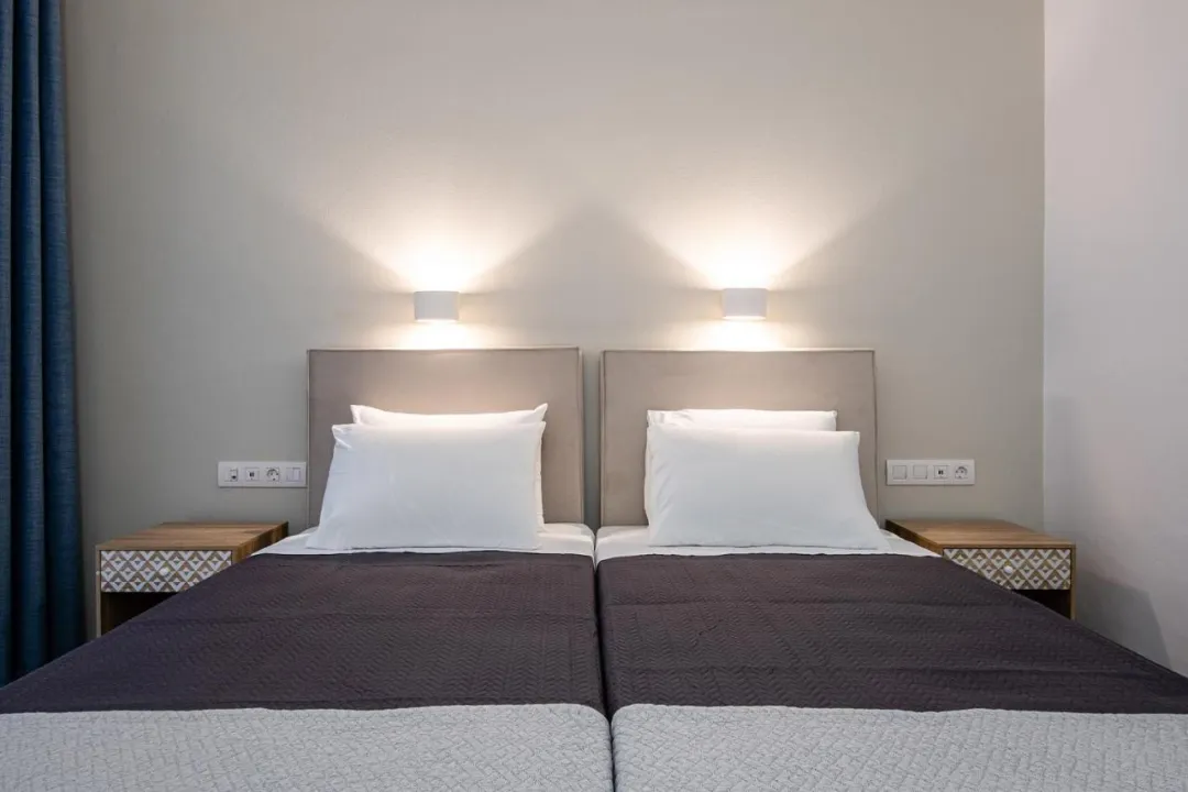 Sobe su opremljene klima uređajem i centralnim grejanjem. U većini jedinica, gosti mogu uživati u pogledu na more sa balkona ili terase. Sobe imaju bračni krevet ili krevet queen size. Kreveti za decu i dodatni kreveti mogu se zamoliti za mlađe goste. Sef, mini bar i radni sto su takođe dostupni. Gosti će takođe pronaći frižider uključen među standardnim sadržajima. Telefon, satelitska televizija i WiFi (bez dodatne naplate) osiguravaju optimalnu udobnost. Kupatila su opremljena tušem i kadom, kao i fenom za kosu. Kao posebna pogodnost u kupatilima, gostima se nude kozmetički proizvodi. Hotel ima porodične sobe, sobe za nepušače i sobe za pušenje.
