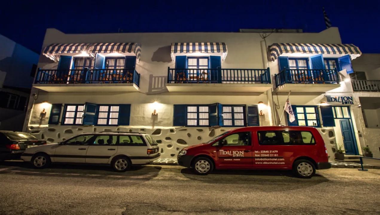 Dilion Hotel Paros se nalazi u Parikiji, ne više od pedeset metara udaljen od plaže. Hotel ima lift i ima 16 soba. Osoblje koje govori engleski jezika je srećno da pomogne i da savetuje. Usluge poput usluge čuvanja prtljaga i sefa osiguravaju udoban boravak. Bežični pristup internetu u javnim prostorijama omogućava gostima da ostanu povezani. Turistički pult nudi pomoć prilikom rezervacije izleta. Vrt pruža dodatni prostor za odmor i opuštanje na otvorenom. Dodatne pogodnosti uključuju TV salu. Parking mesta su dostupna gostima koji putuju automobilom (bez dodatne naplate). Ostale usluge uključuju uslugu čuvanja dece, uslugu čuvanja dece, uslugu iznajmljivanja automobila, medicinsku pomoć, transferne usluge, uslugu poslugu u sobi, uslugu pranja veša, uslugu pranja veša na kovanicu i hotelski šatl autobus.