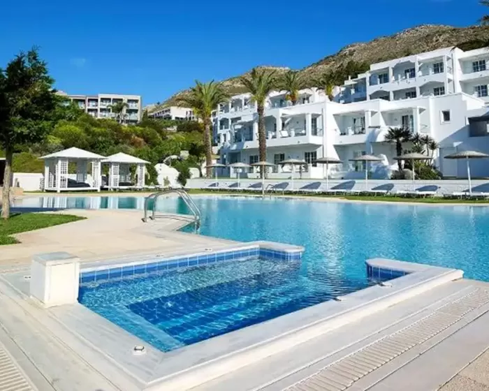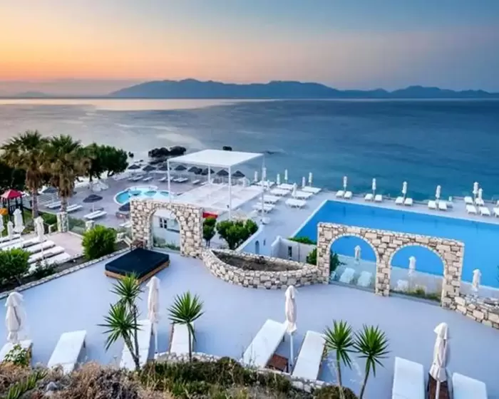 Hotel Dimitra Beach Resort Agios Fokas Kos se nalazi na šljunkovitoj plaži u Agios Fokasu, u blizini termalnih izvora. Od grada Kosa udaljen je oko 8 kilometara, a od aerodroma oko 32 kilometara. Hotel je kaskadnog tipa.