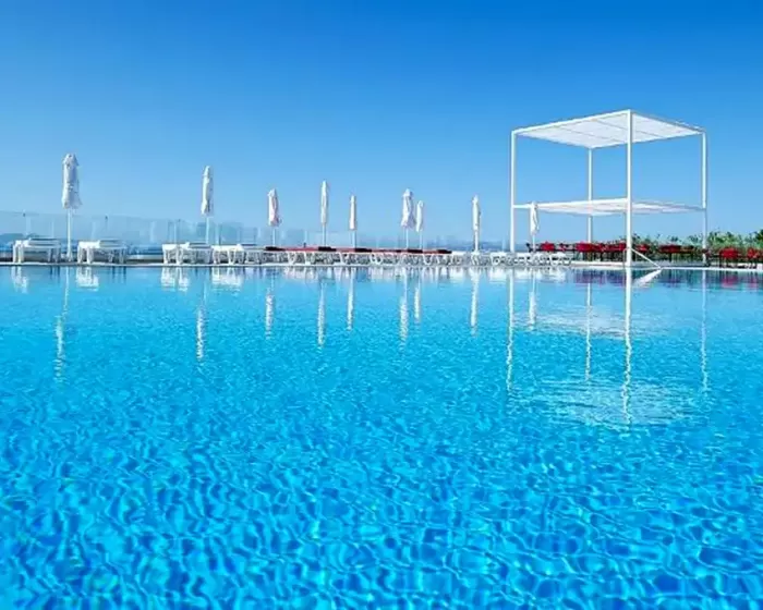 recepcija, wifi internet, 3 restorana, 6 barova, mini market, zlatara, 3 bazena, 3 dečija bazena, ležaljke i suncobrani pored bazena, ležaljke i suncobrani na plaži, dečije igralište, klub i disco, fitness, pilates, djakuzi, SPA, paviljon za masažu na otvorenom.