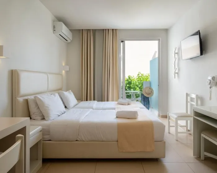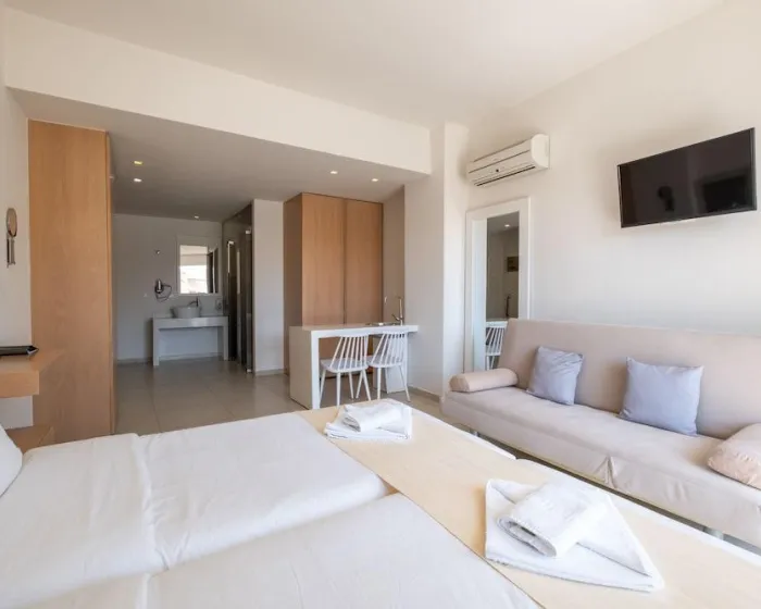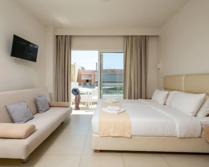 Idealan za ljubitelje plaže i porodice, ovaj butik hotel se nalazi u Rethymnonu i udaljen je manje od 5 minuta od peščane plaže. Centar je udaljen oko 3 km. Najbliže prodavnice i noćni život (barovi, restorani) su udaljeni oko 3 km. Najbliži aerodrom, Hania (CHQ), udaljen je oko 75 km, a Heraklion (HER) je udaljen oko 85 km.