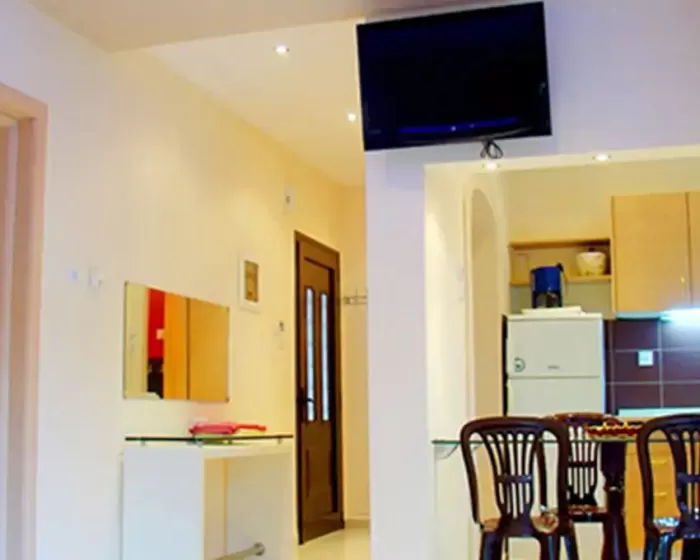 kupatilo, fen, peškiri, klima-uredjaj, komplet opremljena kuhinja, frižider, LCD-TV, wifi internet, balkon sa garniturom za sedenje