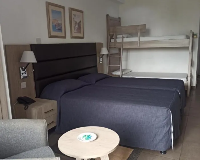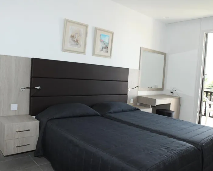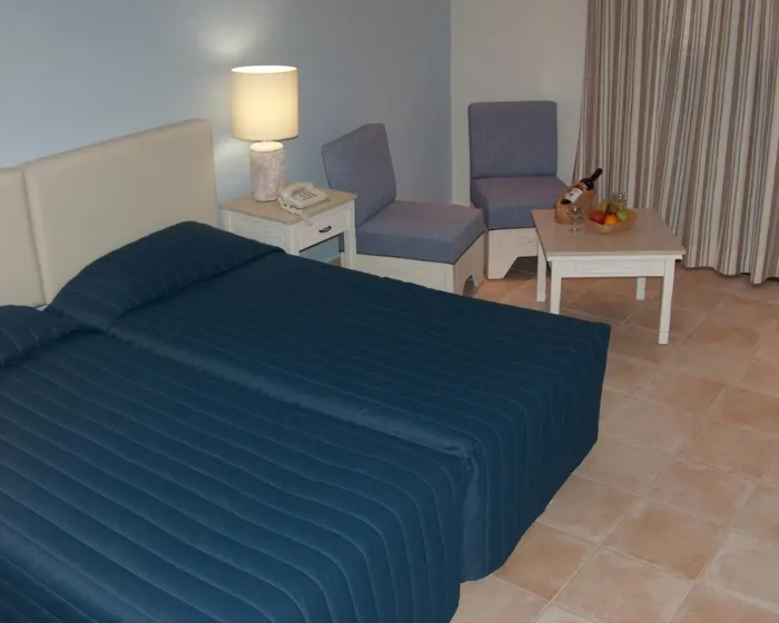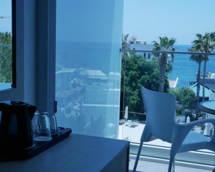 Klima uređaj, centralno grejanje i ventilator obezbeđuju udobne temperature u sobama. Gosti mogu uživati u pogledu na more sa balkona ili privatne terase nekih soba. Sve sobe su presvučene tepihom i imaju bračni krevet ili krevet queen size. Dodatni kreveti mogu biti zatraženi. Sef i radni sto su takođe dostupni. Dodatni sadržaji uključuju frižider i aparat za čaj/kafu. Direktno birani telefon, televizor sa satelitskim/ kablovskim kanalima, radio, stereo sistem i WiFi (bez dodatne naplate) pružaju sve neophodno za udoban odmor. Gosti će pronaći i papuče u svojim sobama. Kupatila su opremljena tušem i kadom, kao i fenom za kosu. Kozmetički proizvodi i izbor peškira pružaju dodatnu udobnost u kupatilima. Hotel ima sobe za nepušače.