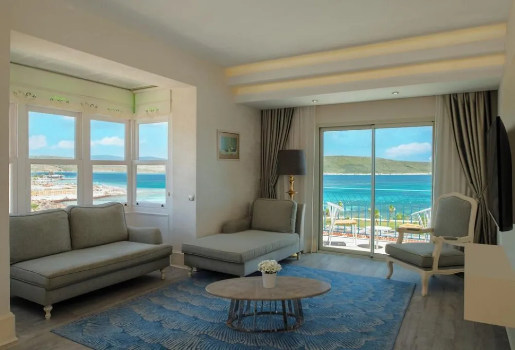 Klima uređaj i centralno grejanje obezbeđuju da sobe održavaju udobne temperature. Gosti mogu uživati u pogledu na more sa balkona ili terase. Sobe sadrže bračni krevet. Kreveti za decu mogu se zatražiti za mlađe goste. Takođe su dostupni sef i mini bar. Gosti će takođe naći aparat za čaj/kafu među standardnim funkcijama. Pegla za pantalone obezbeđena je radi gostovog komfora. Telefon, TV, DVD plejer i WiFi (bez dodatne naplate) takođe su obezbeđeni. Uveče, usluga odlaska u krevet gostima pruža dodatnu udobnost. Sadržaji u sobama uključuju papuče i dnevne novine. Fen za kosu i bade mantili su dostupni u kupatilima, koja su opremljena tušem. Za dodatnu udobnost u kupatilima, gostima se nude kozmetički proizvodi. Resort ima sobe za nepušače.