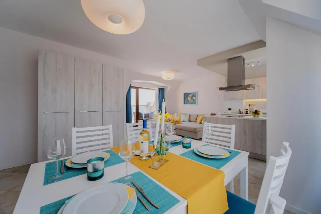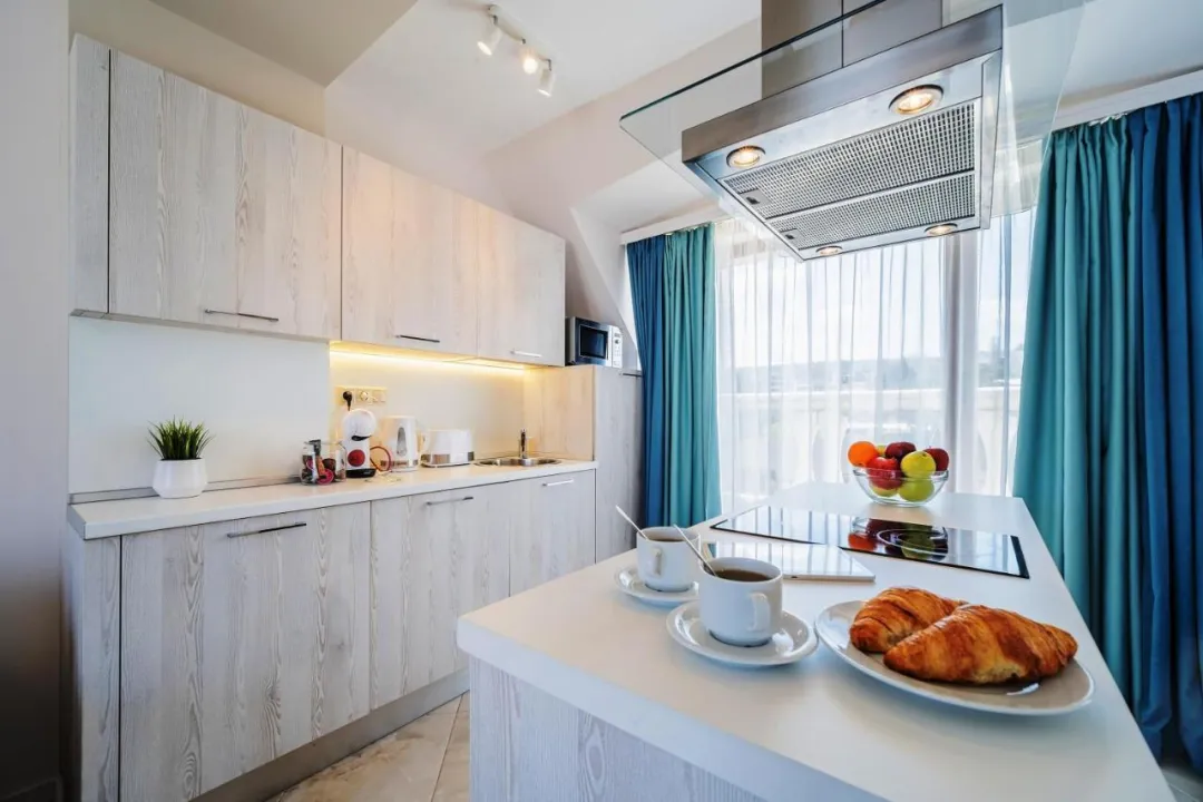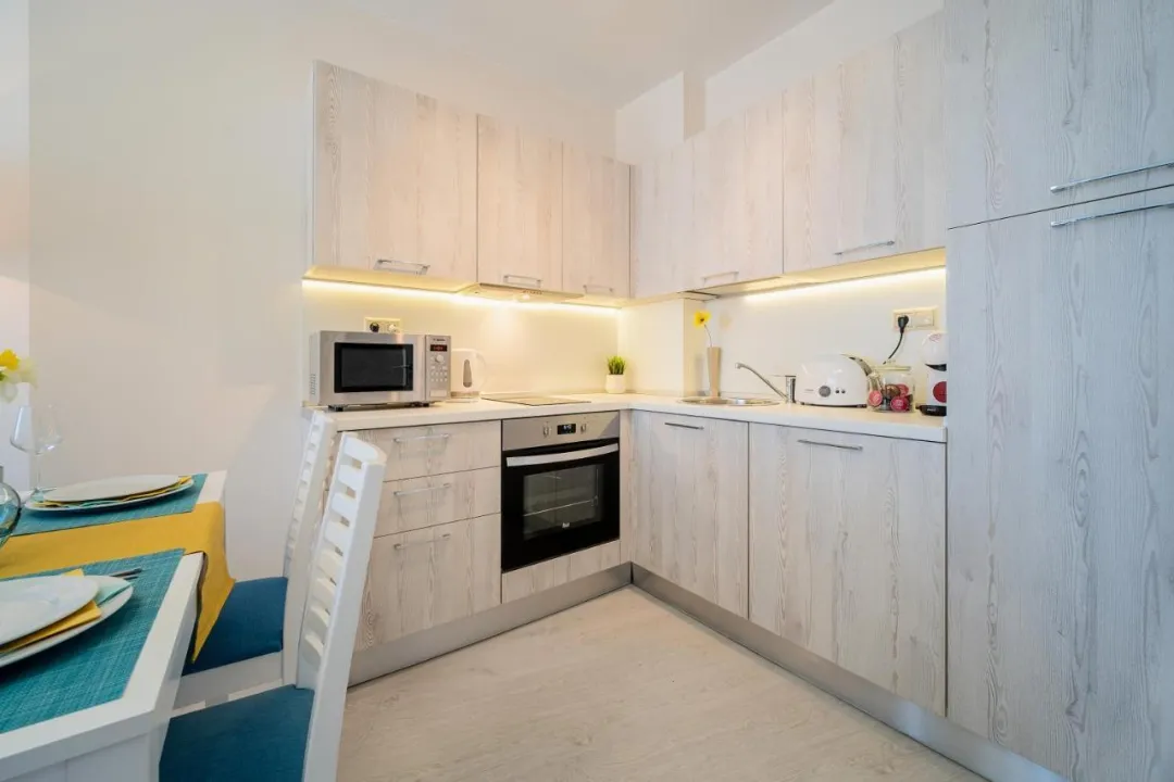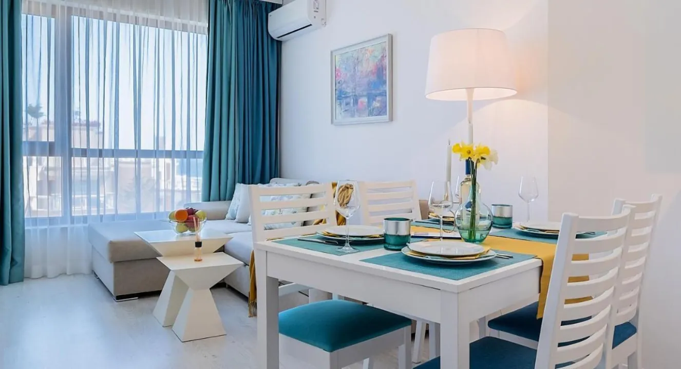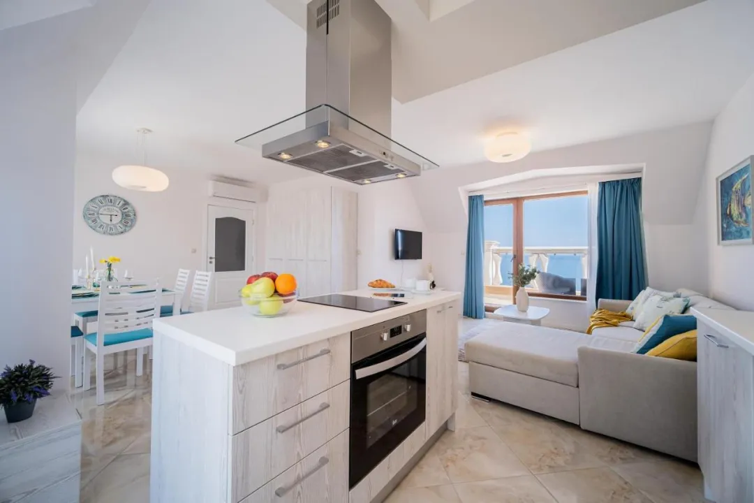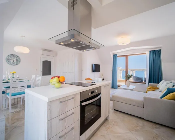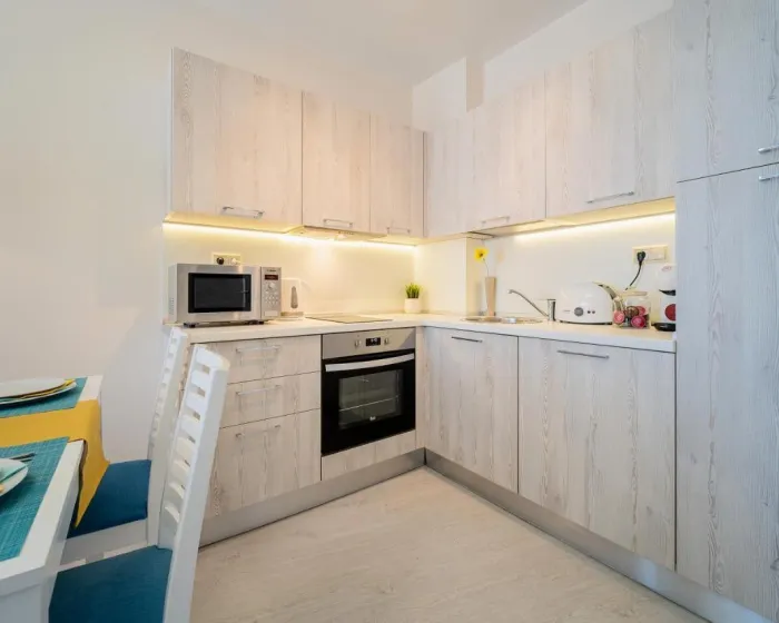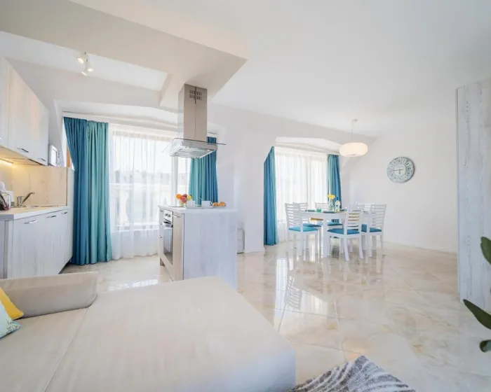 Apartman gostima pruža terasu, pogled na more, prostor za sedenje, kablovsku ravnopravnu TV, potpuno opremljenu kuhinju sa rernom i mikrotalasnom rernom, i privatno kupatilo sa tušem i fenom za kosu. Toster, frižider i šporet su takođe dostupni, kao i aparat za kafu i čajnik. U apartmanskim kompleksu, jedinice imaju posteljinu i peškire.