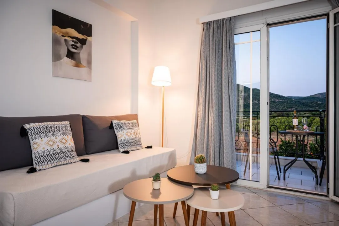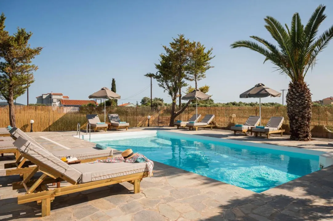 Hotel se nalazi u idiličnom pejzažu, na oko 2 kilometra udaljenosti od centra istorijskog sela Pitaogoreion.