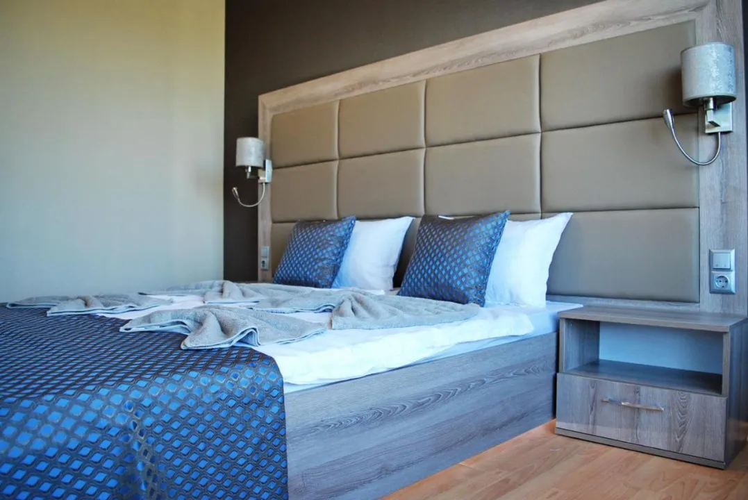 Klima uređaj i centralno grejanje osiguravaju da sobe održavaju udobne temperature. Gosti mogu uživati u pogledu na more sa balkona ili terase. Sobe imaju bračni krevet i sofu na rasklapanje. Mogu se rezervisati odvojene spavaće sobe. Gosti će takođe pronaći ploču za kuvanje među standardnim sadržajima. Telefon, TV i WiFi (bez dodatnih troškova) pružaju sve što je potrebno za udoban odmor. Kupatila su opremljena tušem i kadom.