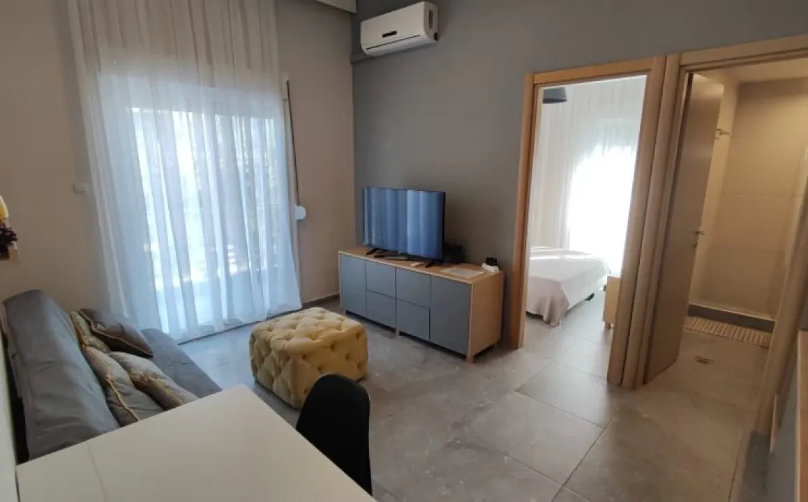 kupatilo, opremljena mini-kuhinja, klima-uredjaj, TV, terasa sa garniturom za sedenje