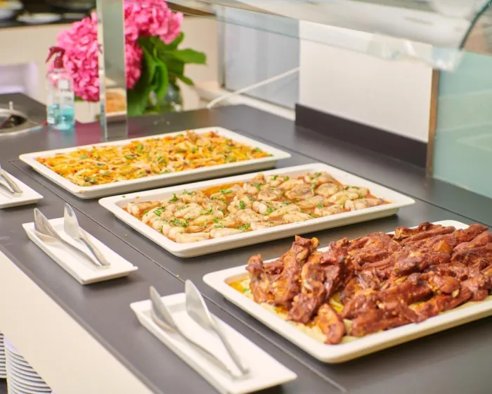 U objektu se nalazi restoran (sa visokim stolicama), kafić i bar. Mogućnosti ishrane uključuju polupansion i pun pansion. Ukusan i raznovrstan bife je pripremljen za doručak i večeru svakog dana, a ručak se može naručiti iz set menija. Dijetetski obroci i obroci bez glutena mogu se pripremiti na zahtev. Pored toga, dostupne su posebne opcije ishrane i zakuske. Kuvanje pred gostima je posebna atrakcija. Hotel nudi izbor alkoholnih i bezalkoholnih pića.