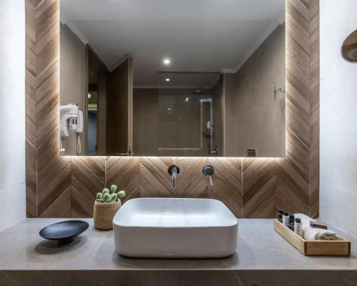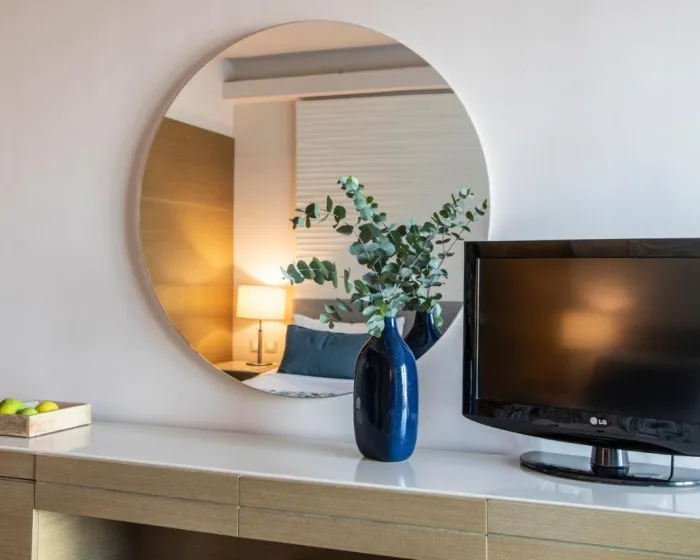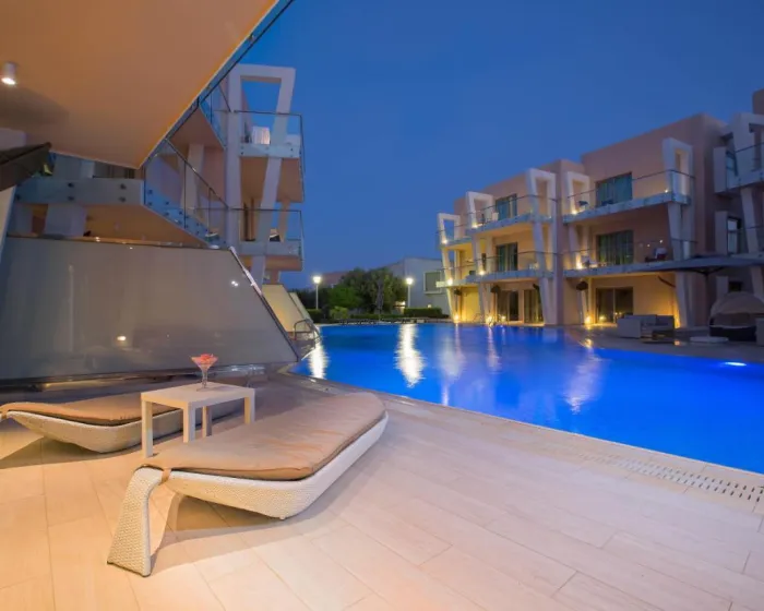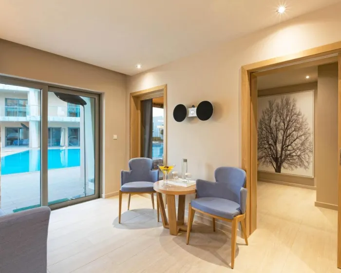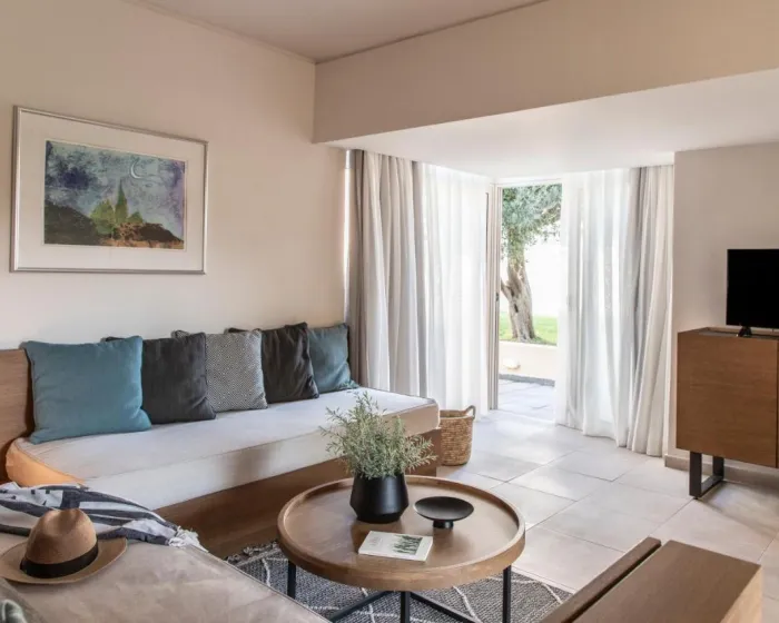 Sobe sadrže dnevnu sobu, kuhinju i kupatilo. Klima uređaj obezbeđuje udobne temperature. Gosti mogu opustiti se i uživati u pogledu na more sa balkona ili privatne terase nekih soba. Sve sobe su popločane i uključuju bračni krevet i krevet na razvlačenje. Moguće je rezervisati odvojene spavaće sobe. Kreveti za djecu i dodatni ležajevi mogu se zatražiti za mlađe goste. Sef i minibar su takođe dostupni. Za udobnost gostiju, jedinice uključuju frižider, mini frižider i aparat za kafu/čaj. Peglalica je obezbeđena za goste. Direktno biranje telefona, televizor sa satelitskim/kablovskim kanalima, radio, stereo sistem i WiFi pružaju sve što je potrebno za udoban odmor. Gosti će takođe pronaći papuče u svojim sobama. Kupatila su opremljena tušem i kadom. Fen, ogledalo za šminkanje, bade mantili i telefon su dostupni za svakodnevnu upotrebu. Može se rezervisati soba prilagođena osobama koje koriste invalidska kolica. Porodične sobe su dostupne za roditelje sa djecom.