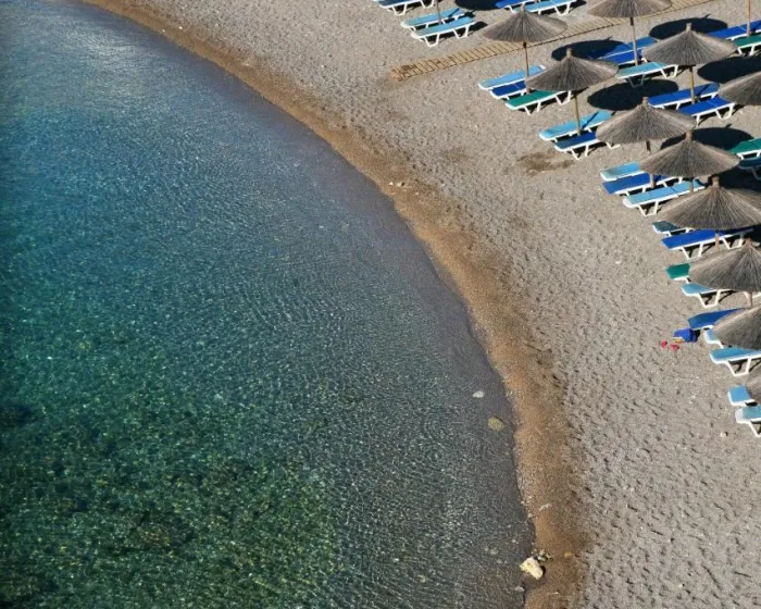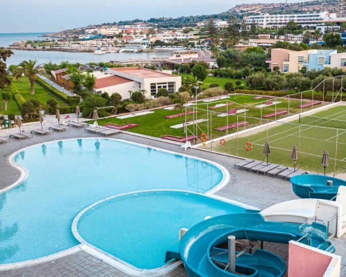 Porodični klubski odmaralište nalazi se direktno na plaži, u mirnoj uvali na granici Rodosa i Kalithei, na samo 4 km od centra grada Rodosa. Najbliži grad je Koskinou, udaljen oko 2 km od plažnog hotela. Međunarodni aerodrom Diagoras udaljen je oko 18 km od bungalovskog kompleksa.