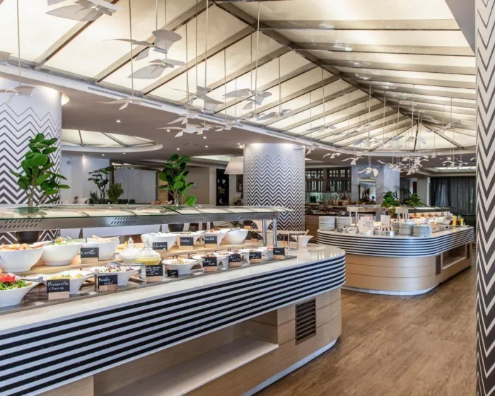 Sadržaji za jelo uključuju trpezariju, prostoriju za doručak, kafić i bar. Gosti mogu uživati u kulinarskim delicijama u restoranu za nepušače, klimatizovanom, koji ima visoke stolice za djecu. Osvježavajući napici u baru na plaži savršen su način da uživate u toplom vremenu. Opcije ishrane uključuju noćenje s doručkom, polupansion, puni pansion i sve uključeno. All-inclusive putnici uživaju u posebnim dodacima poput grickalica, uz selekciju alkoholnih i bezalkoholnih pića. Kontinentalni doručak garantuje odličan početak dana. Ručak (kao švedski sto) i večera (švedski sto, à la carte i set meni) nude nešto za svakoga. Postoje obroci dostupni za one sa specijalnim dijetalnim zahtjevima: dijetalni obroci, gluten-free obroci, vegetarijanska jela i dječji obroci. Kompleks takođe nudi posebne opcije ishrane. Kuvari pripremaju ukusne specijalitete tokom pripreme hrane uživo.