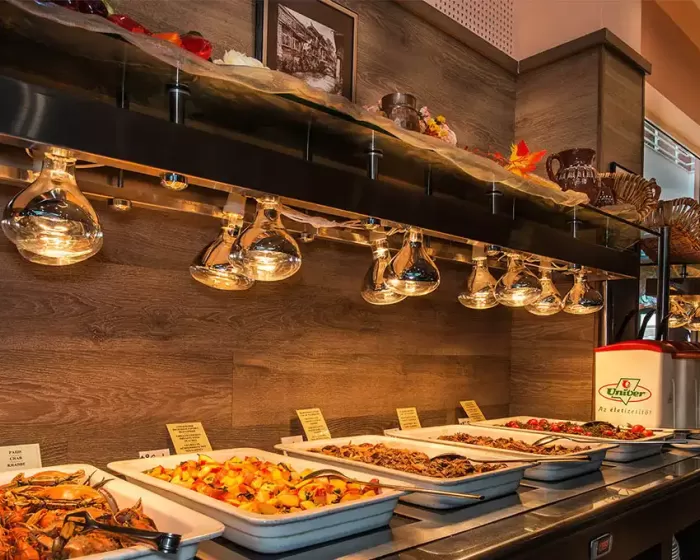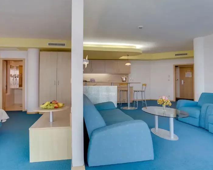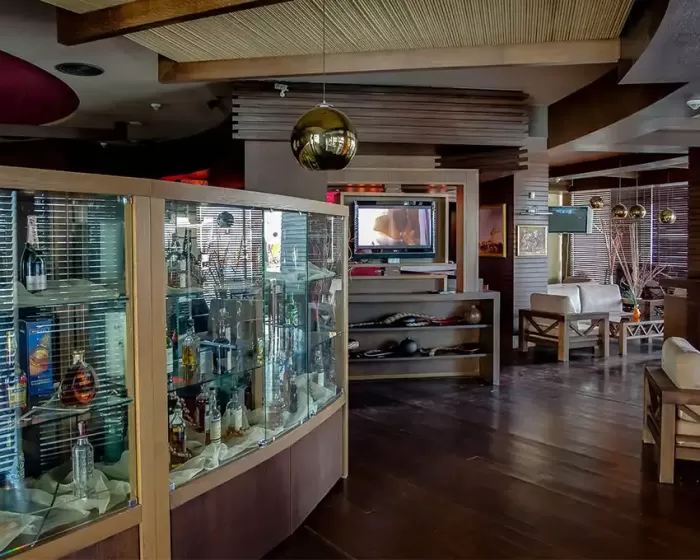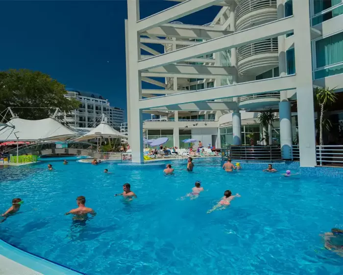 recepcija, a la cart restoran, buffet restoran, lobby bar, aqua bar, otvoreni bazen, bazen za decu, fitnes centar, sauna, frizerski salon, kozmetički salon, tatoo studio, medicinski centar, internet, turist biro, ren-a-car, supermarket, 24h room service, wifi internet