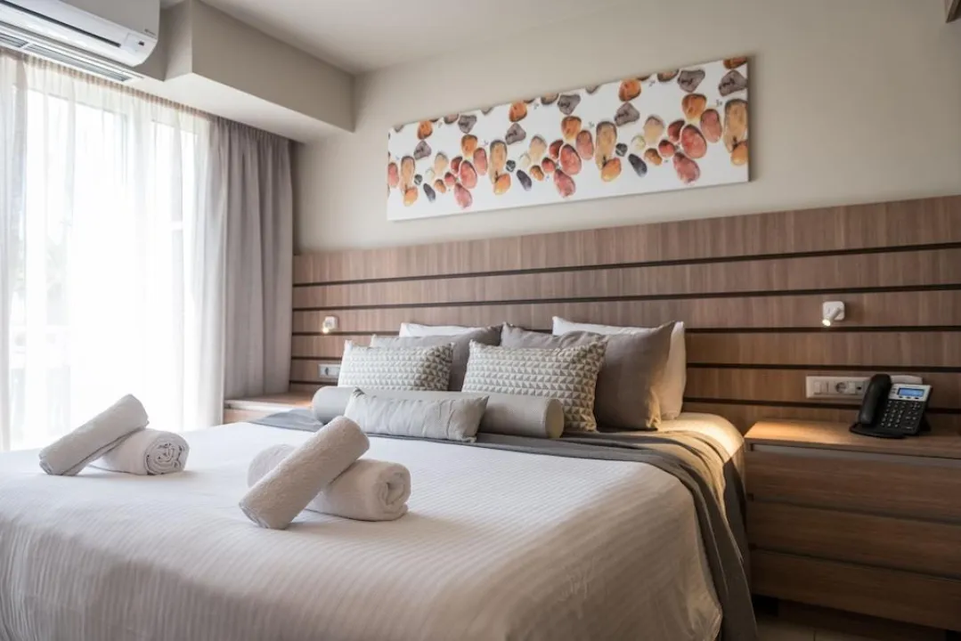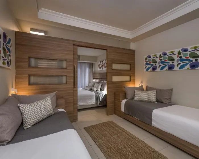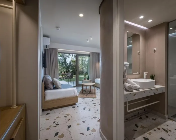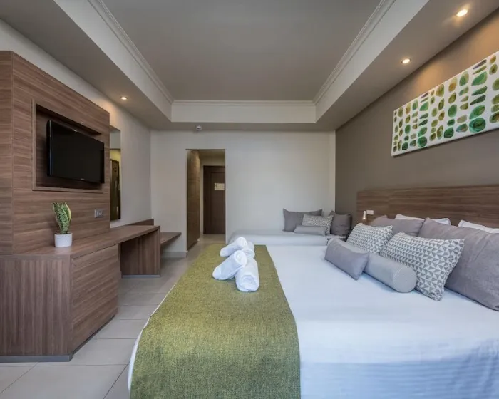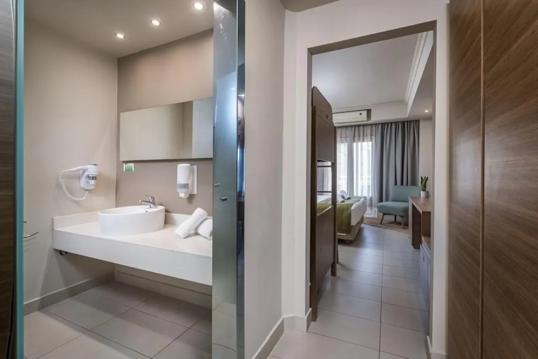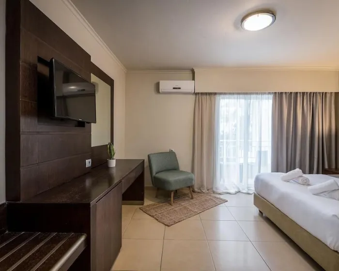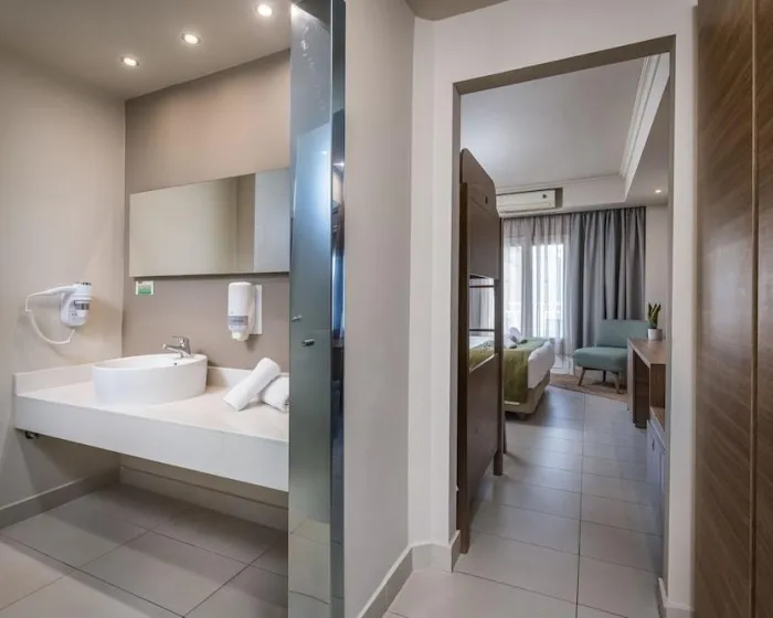 Klima uređaj i individualno podešavanje grejanja osiguravaju da sobe održavaju udobne temperature. Gosti mogu opušteno uživati u delimičnom pogledu na more sa terase nekih soba. Neki apartmani nude prelep pogled na more. Sobe imaju bračni krevet i kauč na razvlačenje. Takođe su dostupni sef i mini bar. Dodatne mogućnosti uključuju mini frižider i aparat za kafu/čaj. Direktni telefonski poziv, satelitska televizija, konzola za igre i WiFi (bez dodatne naknade) pružaju sve što je potrebno za udoban odmor. Papuče su uključene. Fen za kosu, bade mantili i telefon su na raspolaganju u kupatilima za svakodnevnu upotrebu. Za dodatnu udobnost u kupatilima, gostima se nude kozmetički proizvodi. Porodične sobe su na raspolaganju za roditelje sa decom.