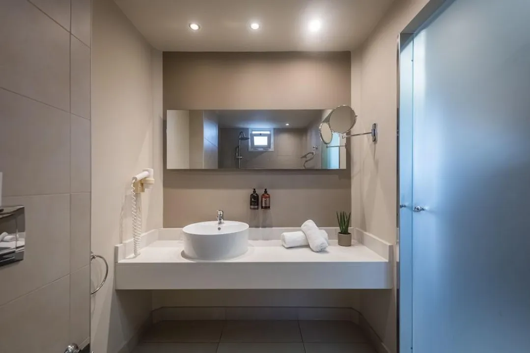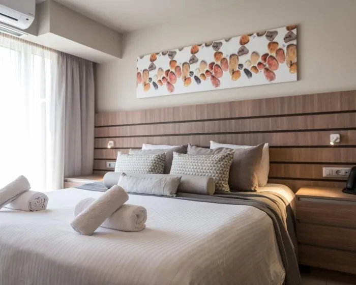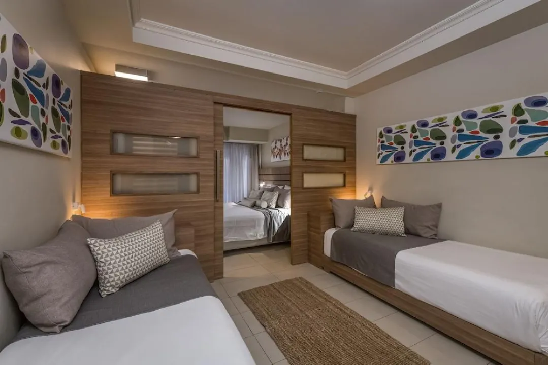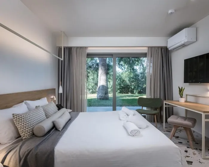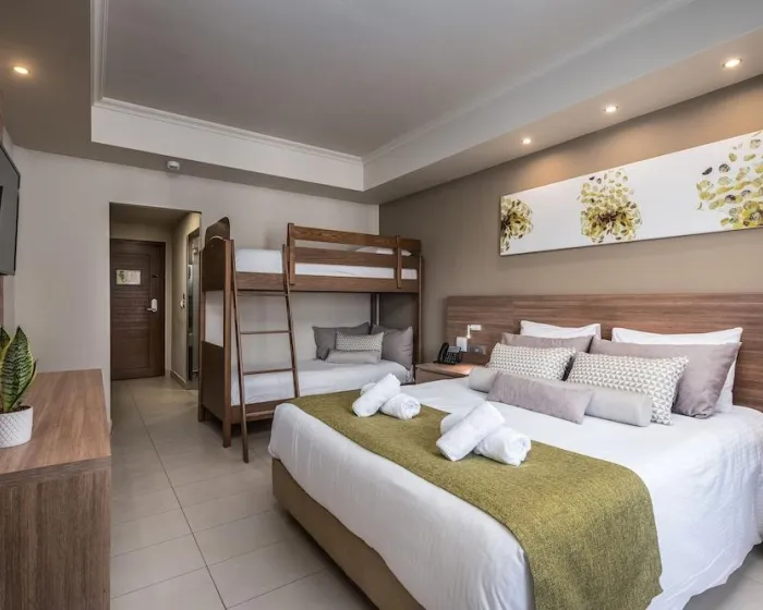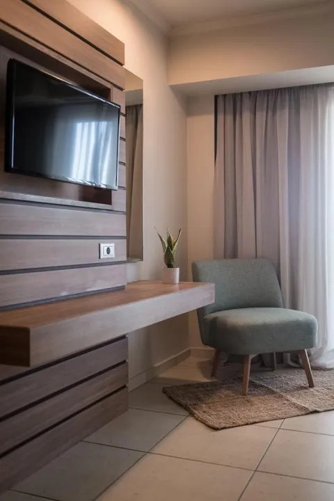 Klima uređaj i individualno podešavanje grejanja osiguravaju da sobe održavaju udobne temperature. Gosti mogu opušteno uživati u delimičnom pogledu na more sa terase nekih soba. Neki apartmani nude prelep pogled na more. Sobe imaju bračni krevet i kauč na razvlačenje. Takođe su dostupni sef i mini bar. Dodatne mogućnosti uključuju mini frižider i aparat za kafu/čaj. Direktni telefonski poziv, satelitska televizija, konzola za igre i WiFi (bez dodatne naknade) pružaju sve što je potrebno za udoban odmor. Papuče su uključene. Fen za kosu, bade mantili i telefon su na raspolaganju u kupatilima za svakodnevnu upotrebu. Za dodatnu udobnost u kupatilima, gostima se nude kozmetički proizvodi. Porodične sobe su na raspolaganju za roditelje sa decom.