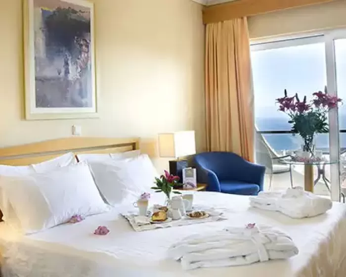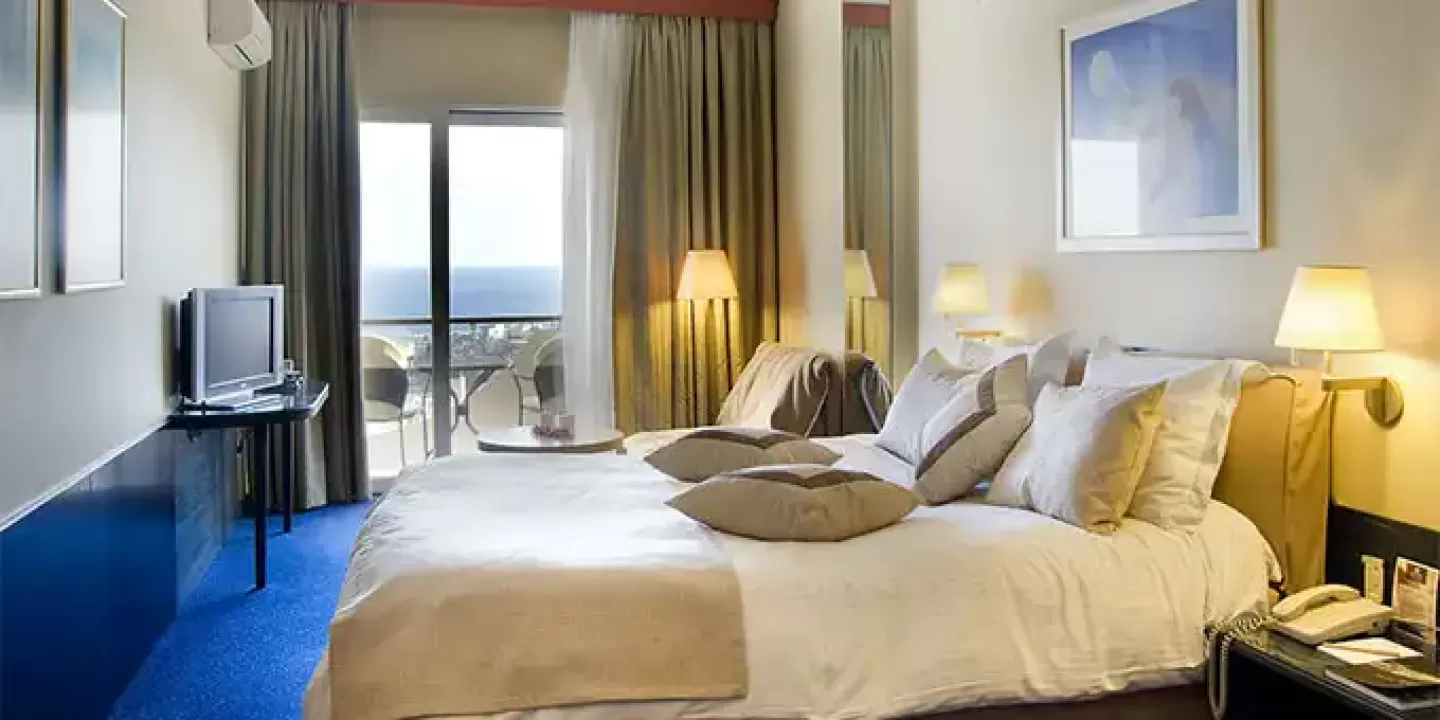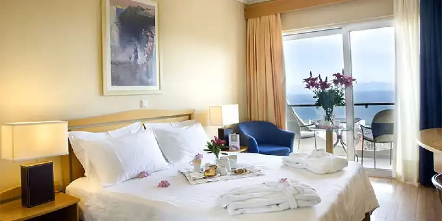 Ukupno 45 soba: Doubles Promo without Balcony (~18-20 m²), Singles Promo without Balcony (~18-20 m²), Single Rooms SV/MV (~22-24 m²) & Double Rooms SV/MV (~28 m²), Triple Rooms SV/MV (~28 m²), Junior Suites SV (~32 m²). U sobama: klima, grejanje, LCD televizor, SAT TV, telefon, Wi-Fi internet, mini-bar (uz doplatu na licu mesta), sef, kada/tuš sa hidromasažerima (u nekim sobama), fen, papuče, kozmetičko ogledalo, balkon (u većini soba).Doubles Promo without Balcony (~18-20 m²) Francuski ležaj ili 2 odvojena ležaja, bez balkona.Singles Promo without Balcony (~18-20 m²) Francuski ležaj ili 2 odvojena ležaja, bez balkona.Single Rooms SV/MV (~22-24 m²) Jedan ležaj.Double Rooms SV/MV (~28 m²) Francuski ležaj ili 2 odvojena ležaja, kauč/sofa u nekim sobama.Triple Rooms SV/MV (~28 m²) Francuski ležaj i 1 odvojeni ležaj ili 3 odvojena ležaja ili francuski ležaj i kauč/sofa na rasklapanje.Junior Suite (~32 m²) Prostrana soba. Francuski ležaj, gostinjski kutak sa kaučem/sofom, papuče i bademantili.Tip dodatnog ležaja - sofa/fotelja/krevet na rasklapanje.