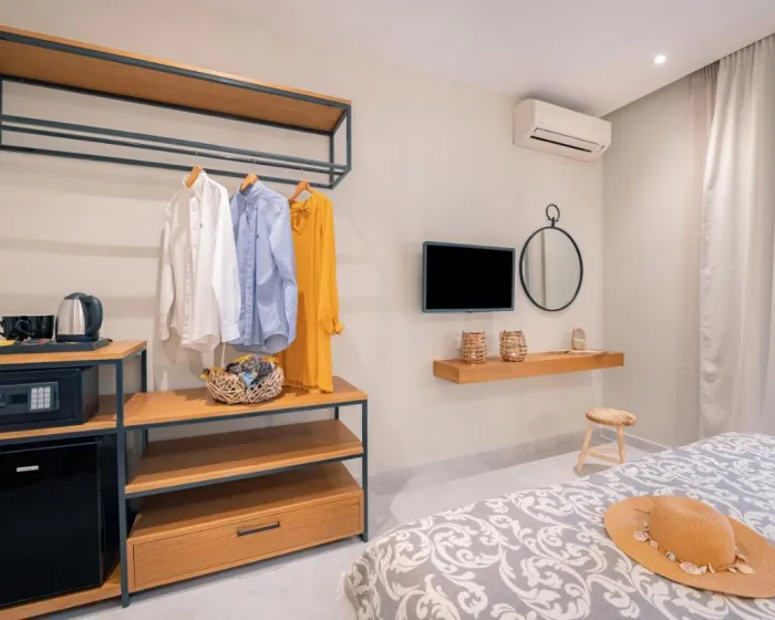 Ekati Mare Boutique Resort srdačno dočekuje goste u Kavosu. Za roditelje s decom, pruža sve što je potrebno za ugodan boravak. Prijateljsko osoblje na recepciji rado će odgovoriti na sva pitanja. Usluge i sadržaji uključuju igraonicu, biblioteku, uslugu čuvanja dece i konferencijsku salu. Bežični pristup internetu omogućava gostima da surfuju internetom i provere e-poštu. Postoji nekoliko prodavnica. Parking je dostupan gostima i uključuje garažu i parking (bez dodatne naplate). Usluga iznajmljivanja bicikala pruža svu neophodnu opremu za istraživanje okoline.