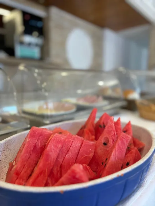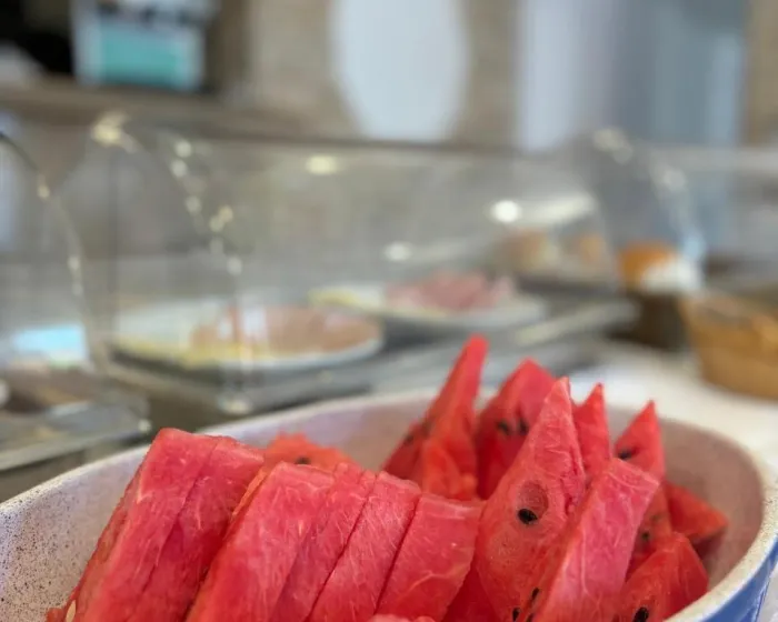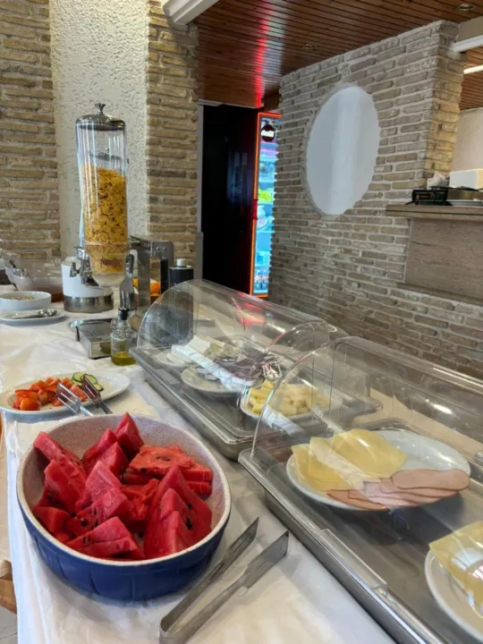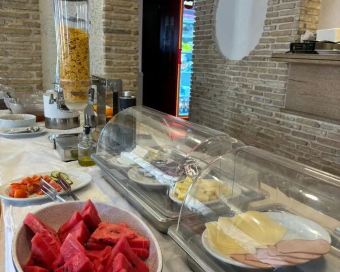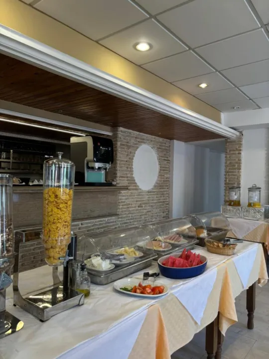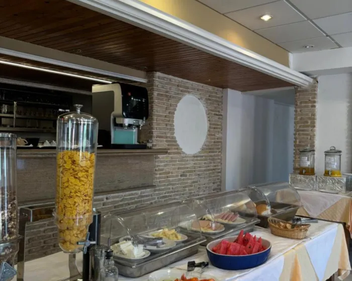 Gosti mogu uživati u jutarnjoj kafi ili sveže ceđenom soku u baru-restoranu na licu mesta, gde se takođe služe mediteranska jela za ručak ili večeru. Kafići i super marketi se mogu naći u radijusu od 70 metara od objekta.