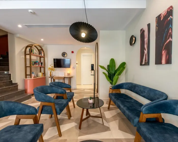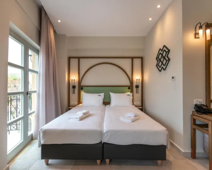 Hotel se nalazi u starom gradu Hani, odmah pored venecijanske luke i samo 500 m od plaže Njea Hora. Međunarodni aerodrom Hani udaljen je oko 12 km.